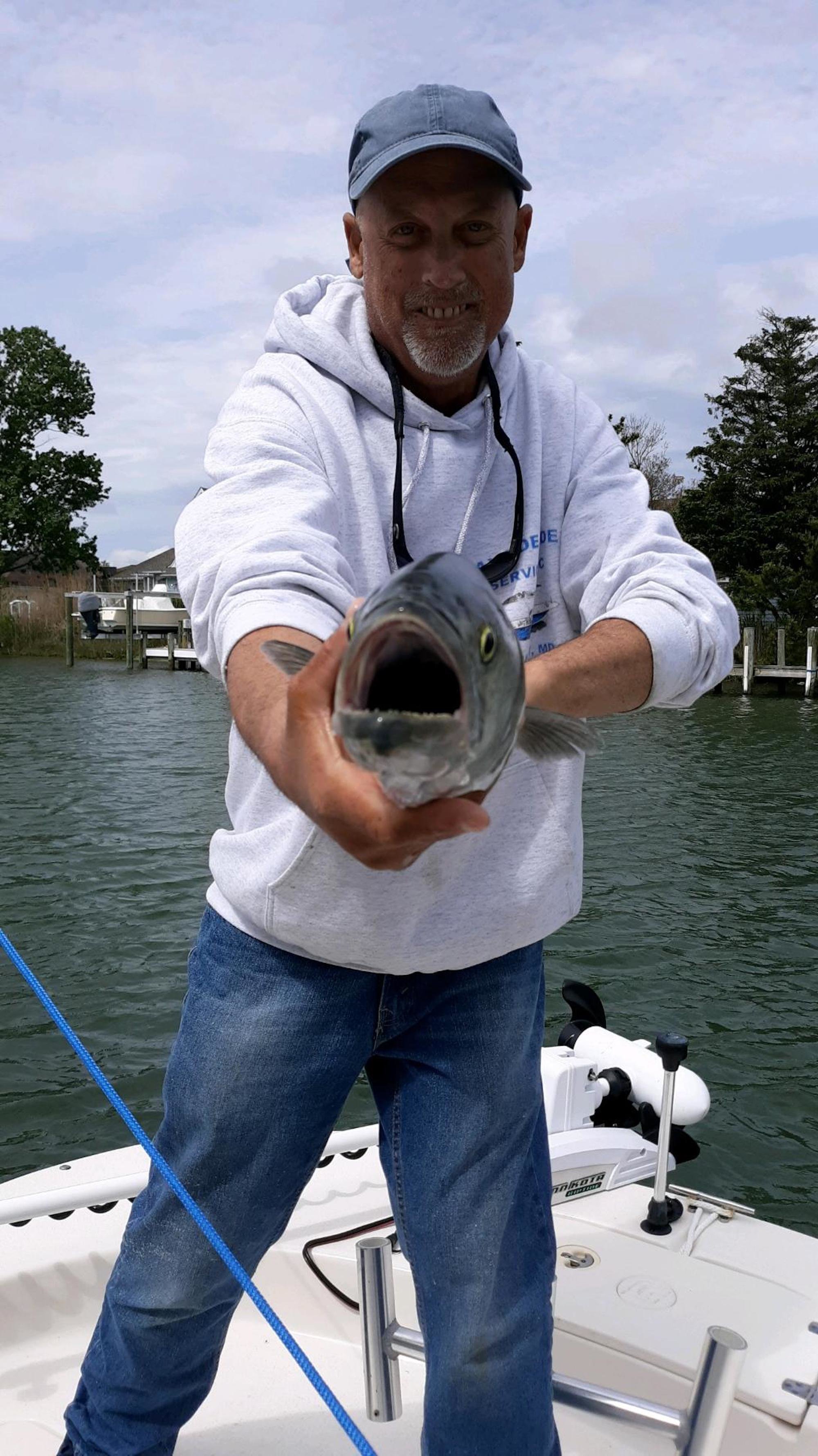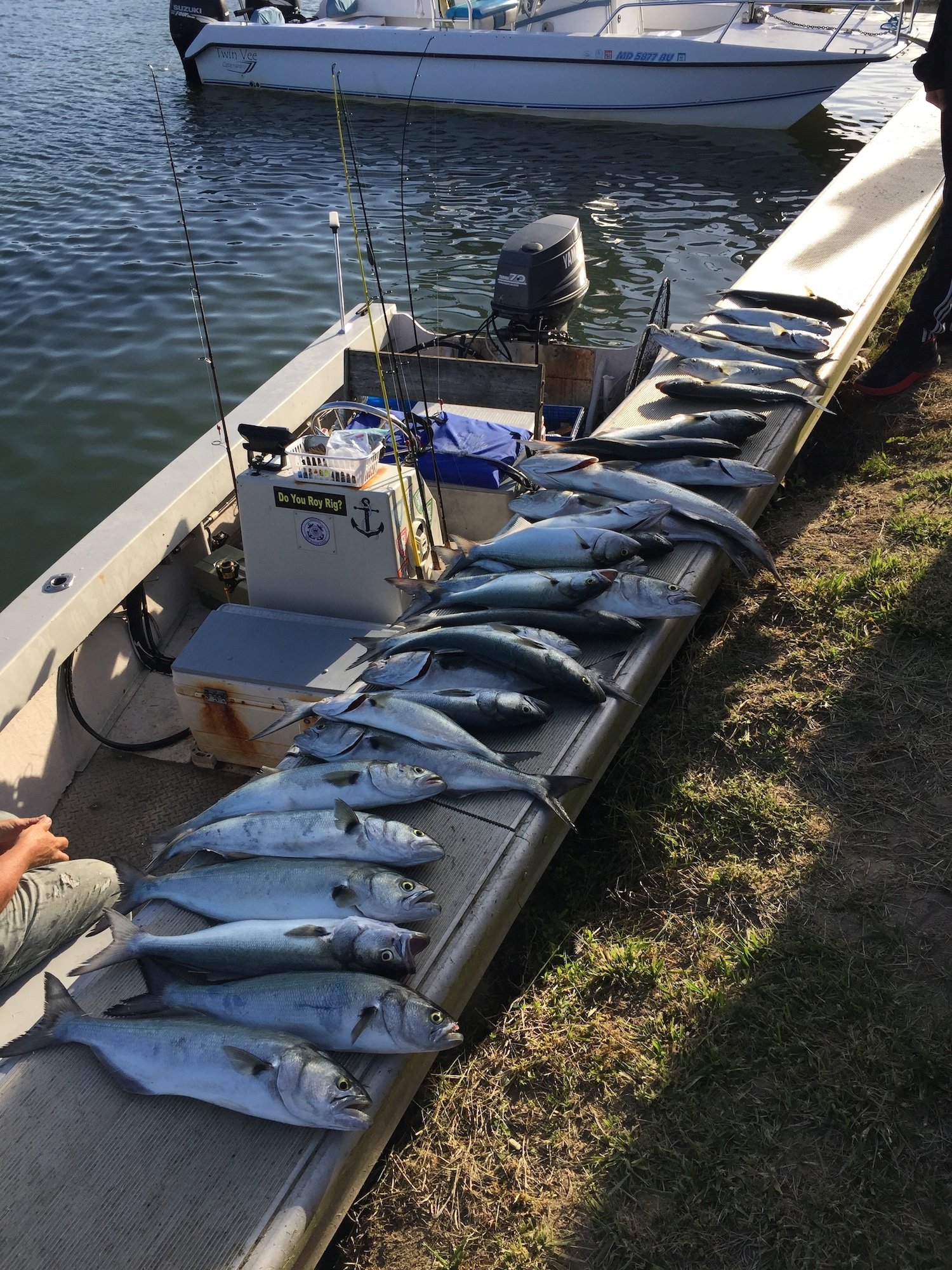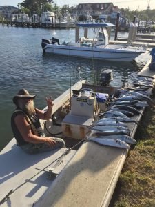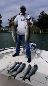 Captain Wayne Blanks and his brother Captain Eric Blanks had a terrific morning with the bluefish at the route 50 bridge. Captains Blanks mugged up on some chopper sized blues that they are going to try in the smoker.