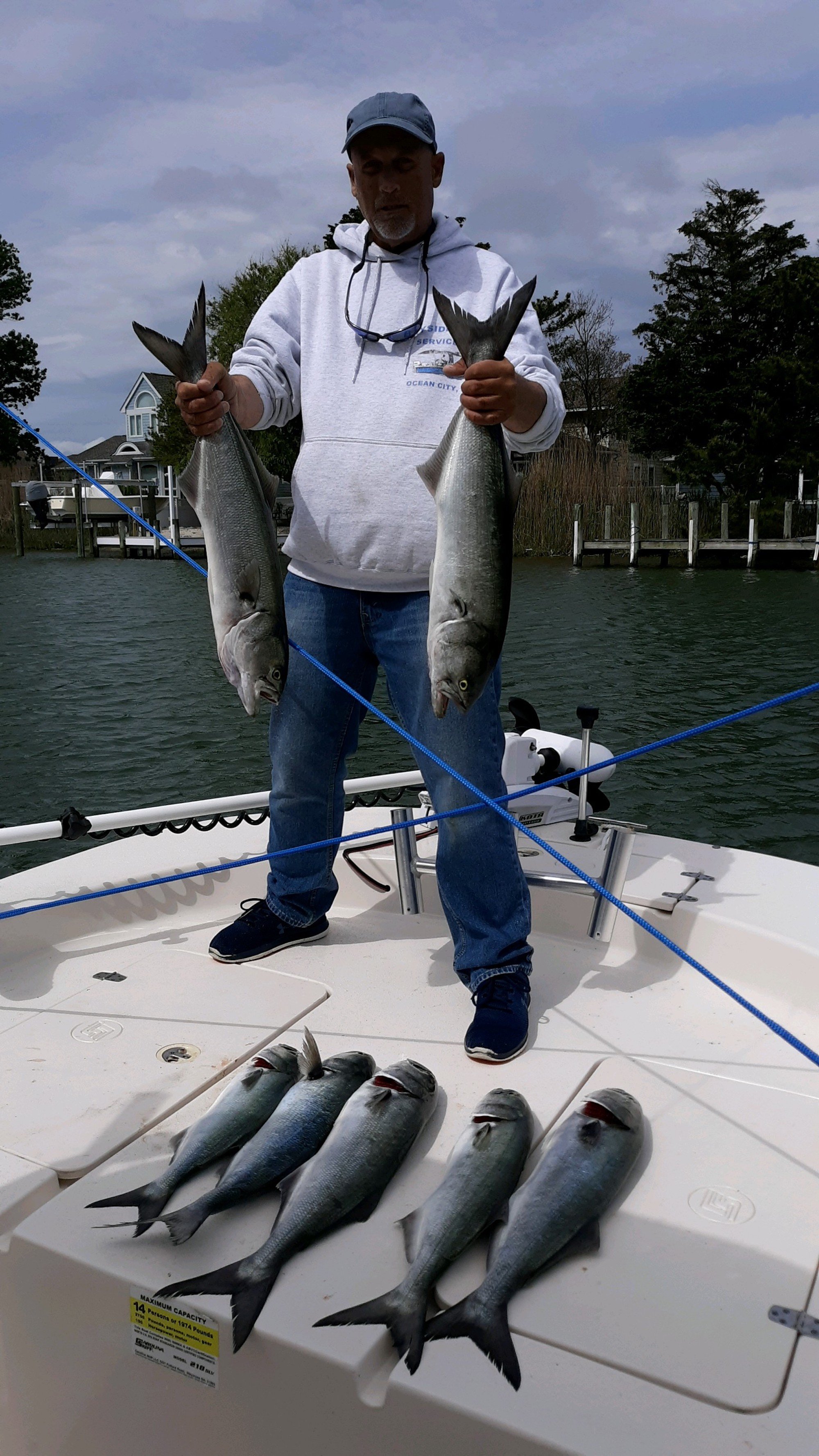 It was a nice day for non anglers today with sunny skies and warm temps, but the wind was puffing pretty good out of the south and the back bay got pretty dirty which made it tough for anyone looking for a flounder. The incoming tide had clean enough water for the bluefish to snap again and last night there was a JUMBO rockfish caught on the Oceanic Pier in downtown Ocean City.