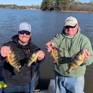Greetings all! I hope you had a chance to get out and enjoy today’s beautiful weather like I did. Temps were in the upper 50s, the sun was shining and best of all the wind was light. It was a great day to get on the river with my good friend Eric Sexton and try for some winter white and yellow perch. My awesome wife Kristen joined Eric and I to video a new episode of Hooked on OC and we had a great time on the Nanticoke River. The white perch were a no show as it’s just a little early, but we did catch some blue catfish and some yellow perch. A couple of the perch were over 12″ and fat and we had plenty for a nice fish fry. You can find yellow and white perch on several tributaries of the Chesapeake Bay this time of year and they are great fun to catch and very tasty eats.