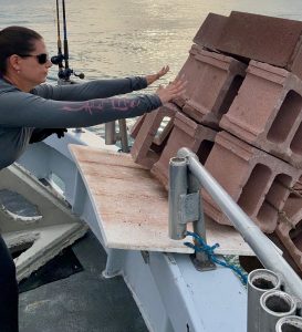 Maryland doesn’t have a Marine Reef Program. What you see falling off the stern of my boat really is building reef—every day another small step toward coral restoration; and we’ve made fantastic catches on these hand deployed reefs too: the real work off Maryland’s coast, however, is done by the OC Reef Foundation. Early in January 2022 and again late in May, for instance, we sank two 110 ft barges. Currently we have 8 different steel boat/barge projects in consideration. Hard to say what of them will actually become reef, or if another major project will supplant all of them. The deciding factor, the limiting factor, is always funding. Since 1997 when MD dropped the state reef program in favor of oyster spat production at Horn Point, donations have been the driving force behind our marine habitat improvements. Near about all of it really.