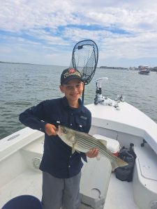 Captain Wayne Blanks of Bayside Guide Service had a nice morning trip that ended with several rockfish releases and three chopper bluefish from the route 50 bridge.