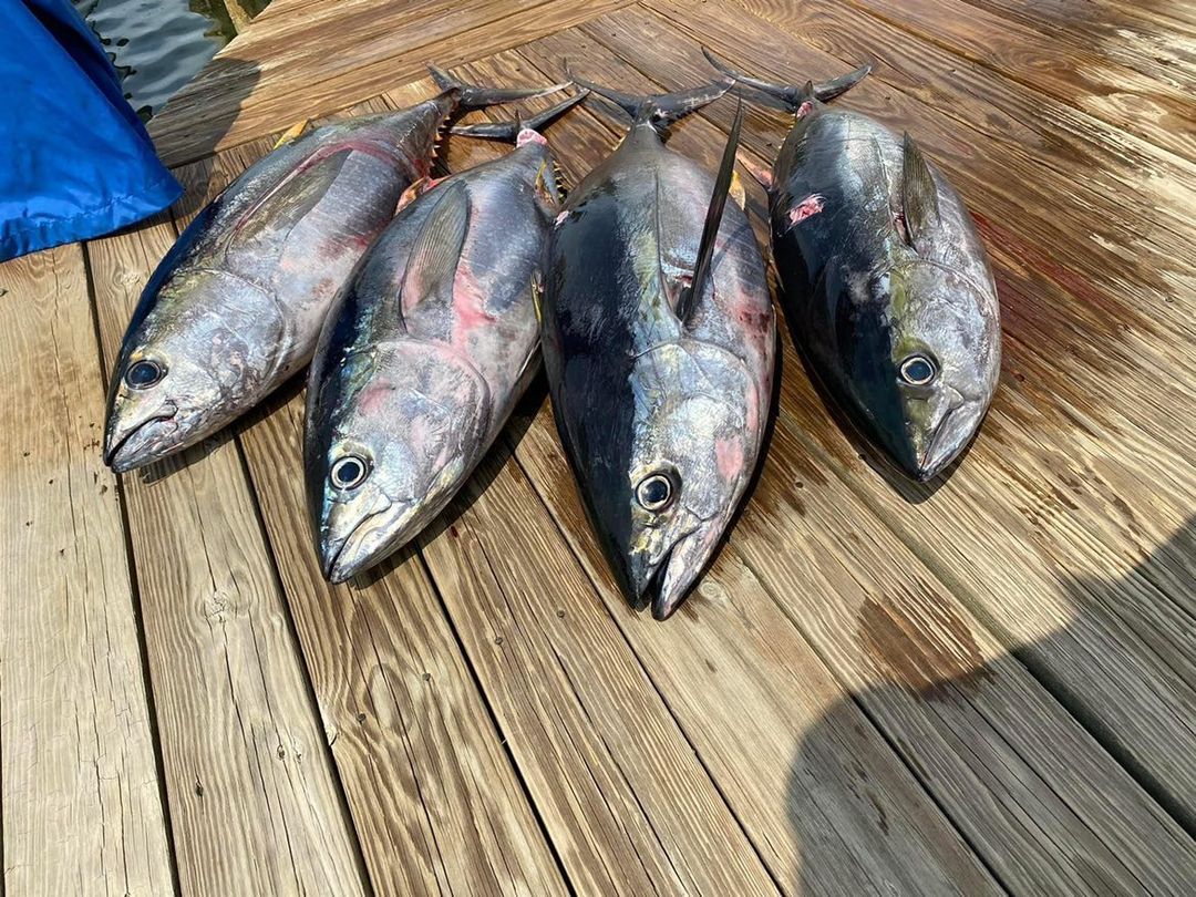Boats are practicing this week for this weekend’s 35th Annual Ocean City Tuna Tournament at the Ocean City Fishing Center and thankfully there are some tunas in the area. Captain Willie Zimmerman and his crew on RoShamBo found some good ones today that included four yellowfin tuna and a nice 145 pound bigeye.