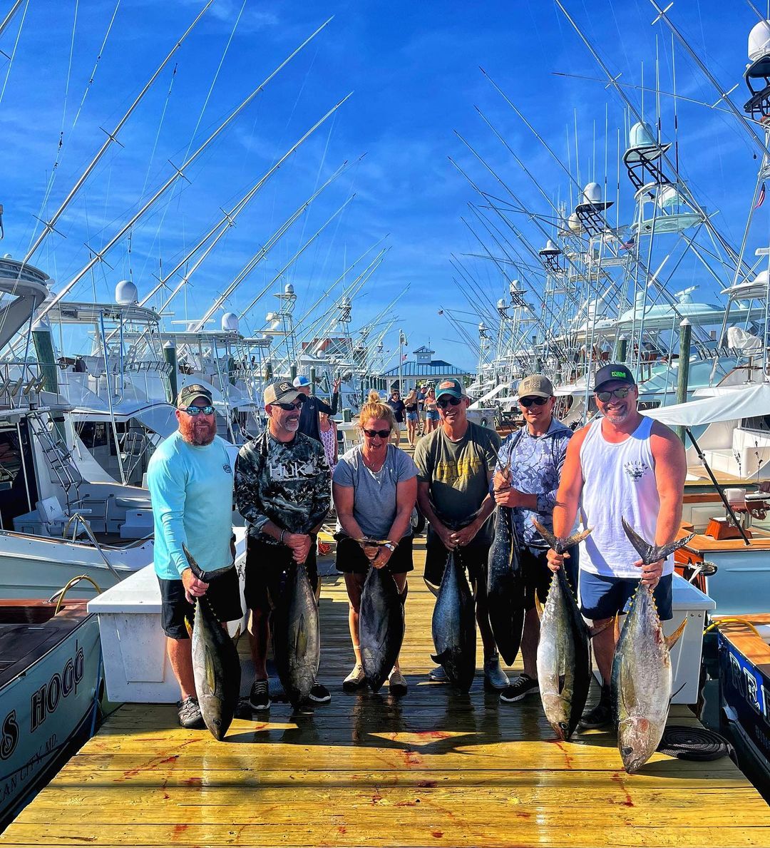 The crew of Boss Hogg out of Sunset Marina found some tunas today too and put seven nice yellowfin on the dock.