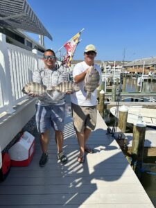 Jeff Weeks and Dave Weller did a little fishing at the south jetty the other day and had a good catch of sheepshead that were caught on sand fleas.