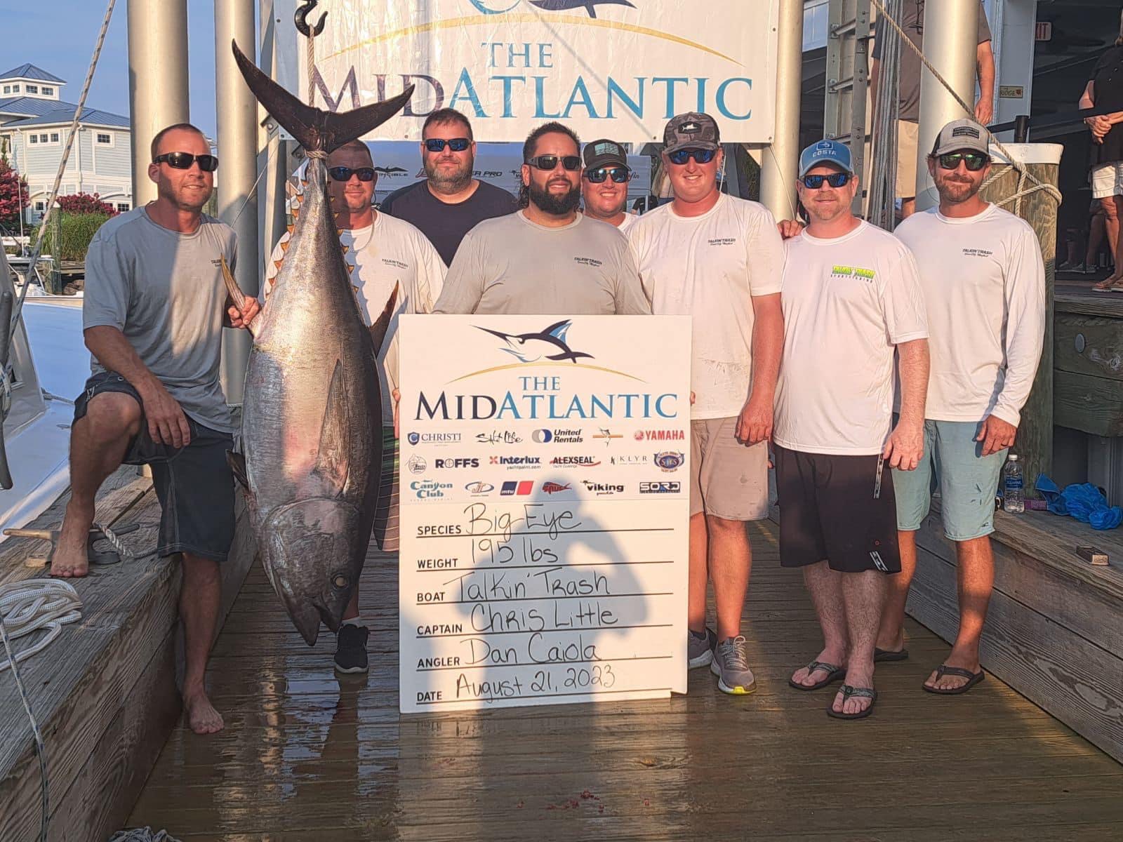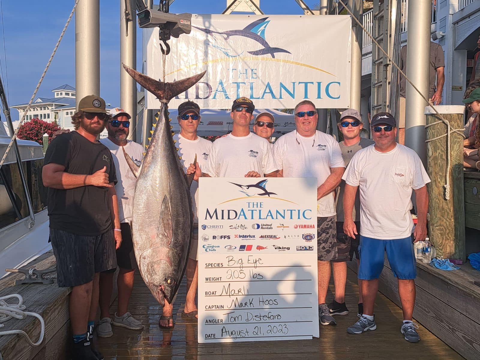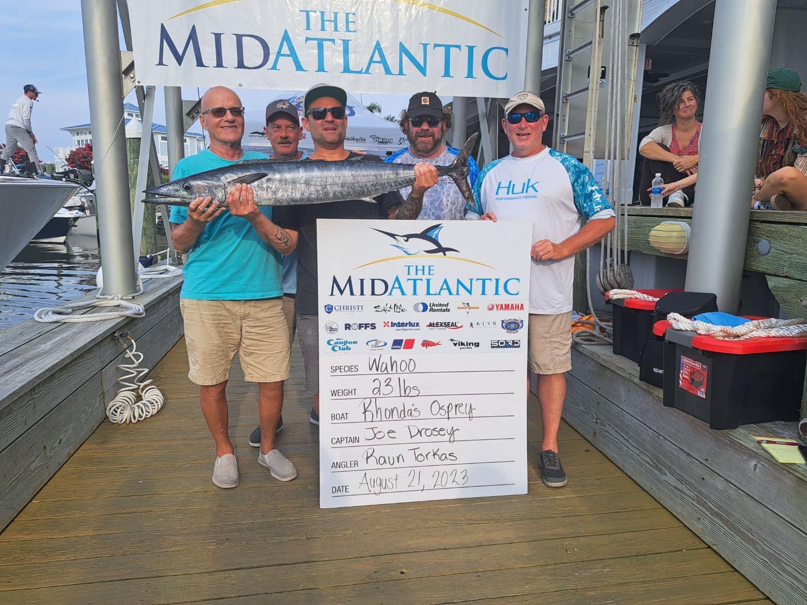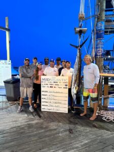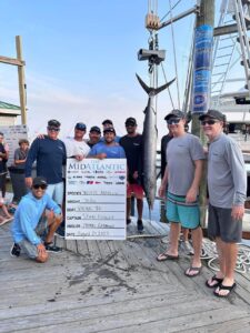 With just 11 boats fishing on day 2 of the 2023 MidAtlantic Tournament we had a feeling it might be a little slow, and we were right. There was one blue marlin in Cape May that didn’t meet the 102″ tournament minimum and there was one dolphin in Ocean City that jumped into second place on the leaderboard. Here’s who’s leading what after two days of fishing.