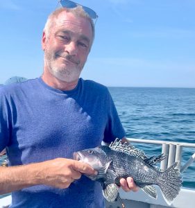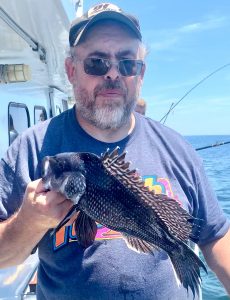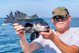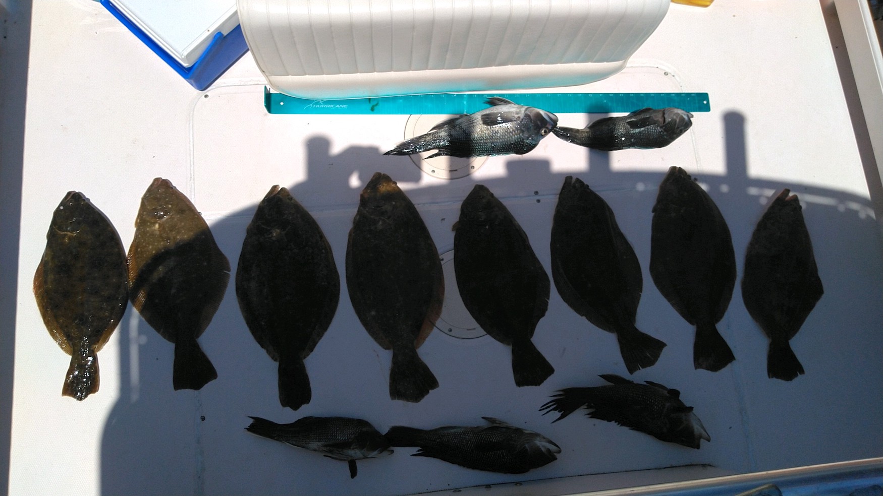 Captain Chris Mizurak of the Angler was fishing the rip today too and had a nice day with lots of sea bass and plenty of keeper flounder coming over the rail.