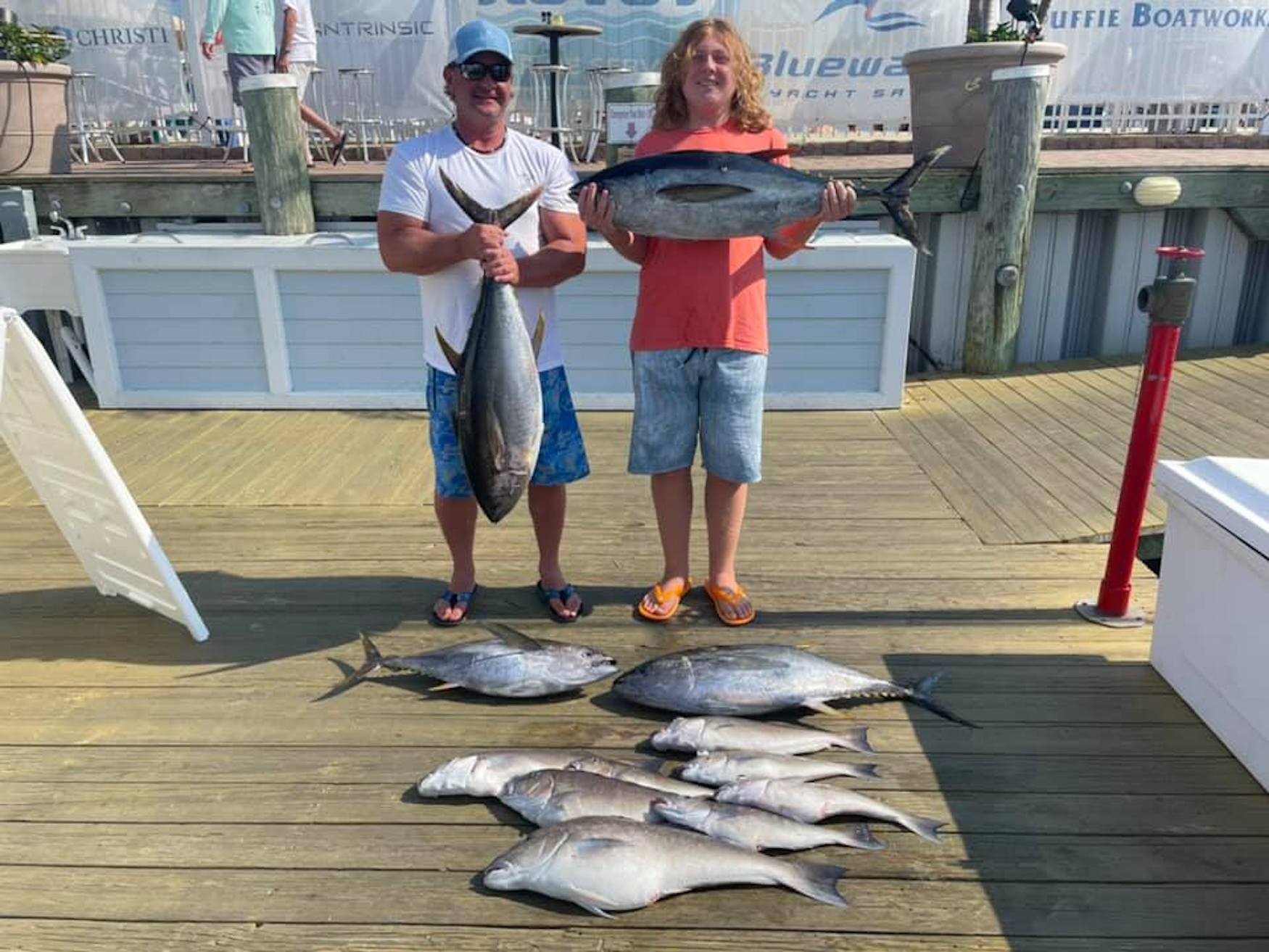 Mike and Mikey Pitarra had a good day fishing on board the Lucky Duck out of Sunset Marina with the Boykins and put some yellowfin tuna and tilefish in the boat.