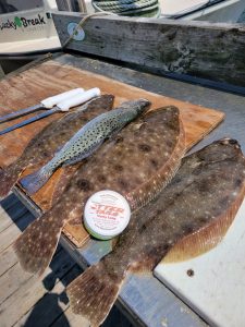 Captain Jason Mumford of Lucky Break had a nice trip today that ended with three keeper flounder and a speckled trout in the fish box.