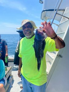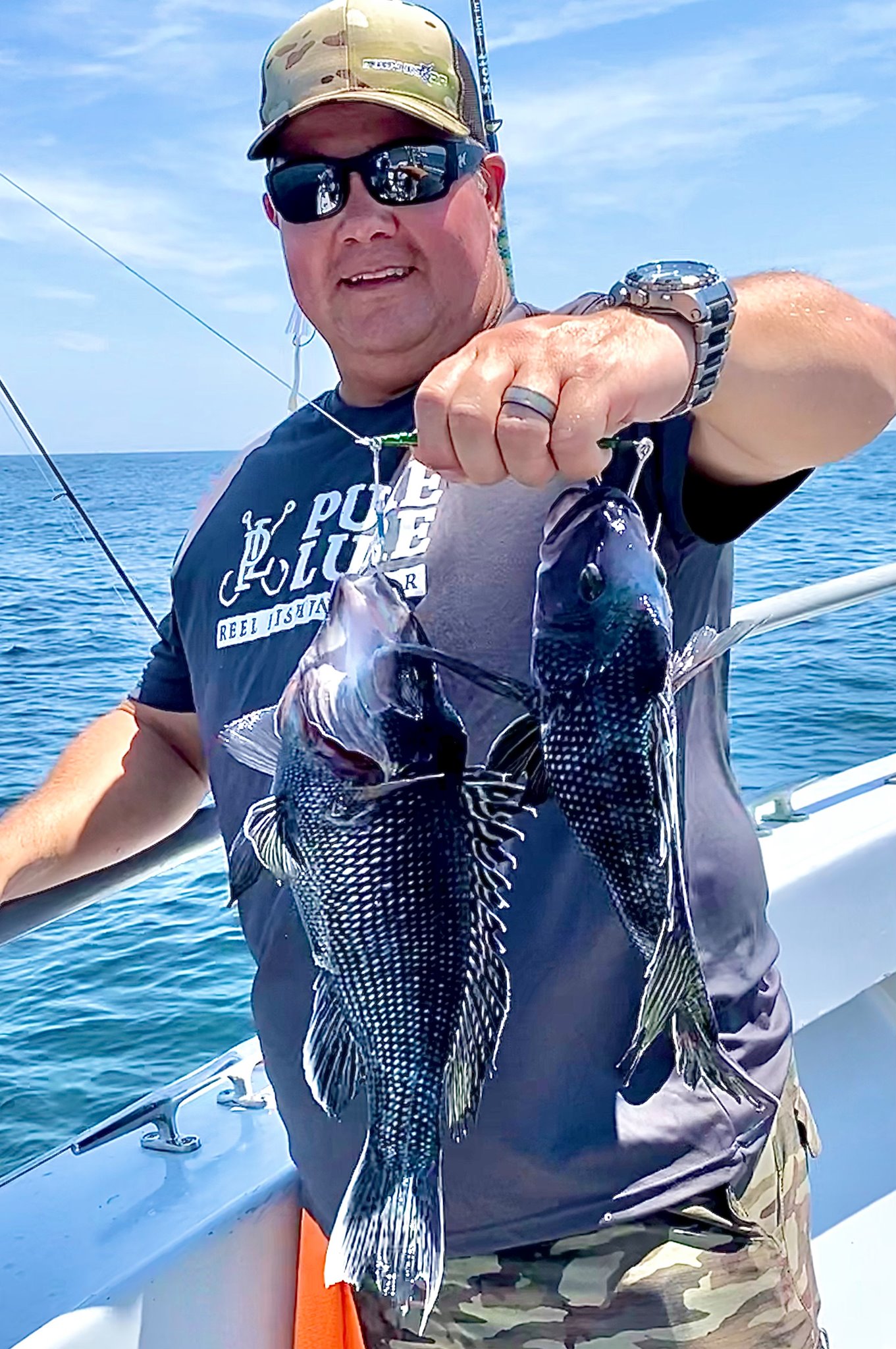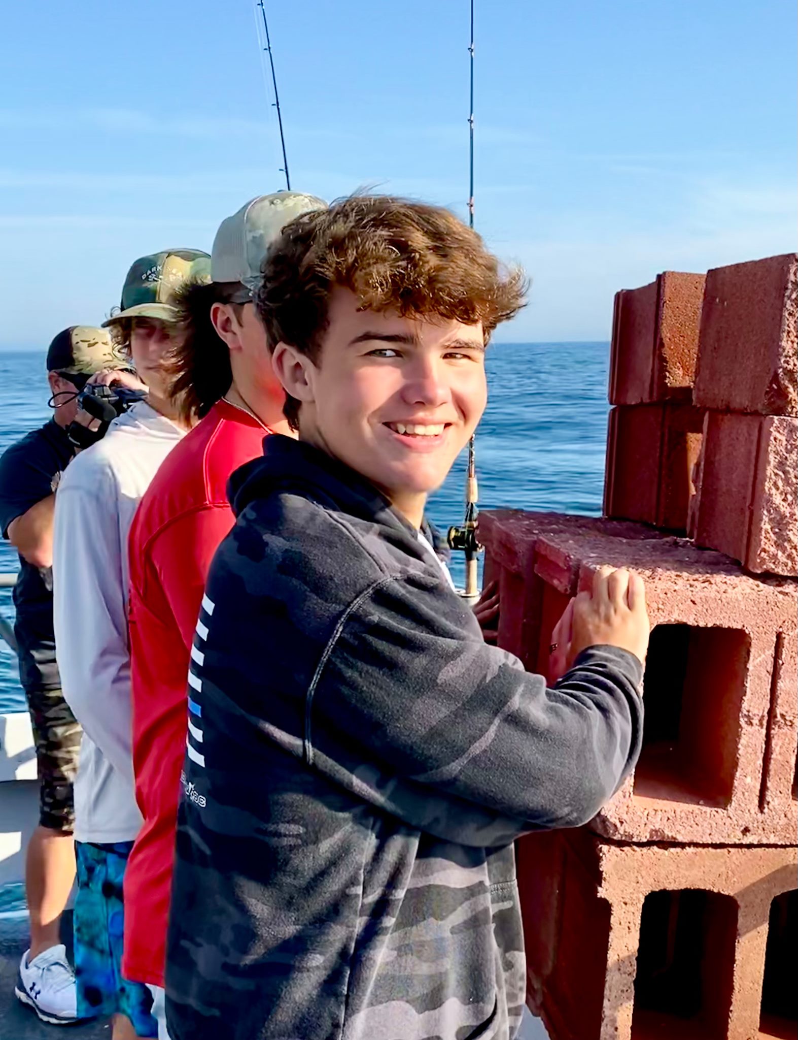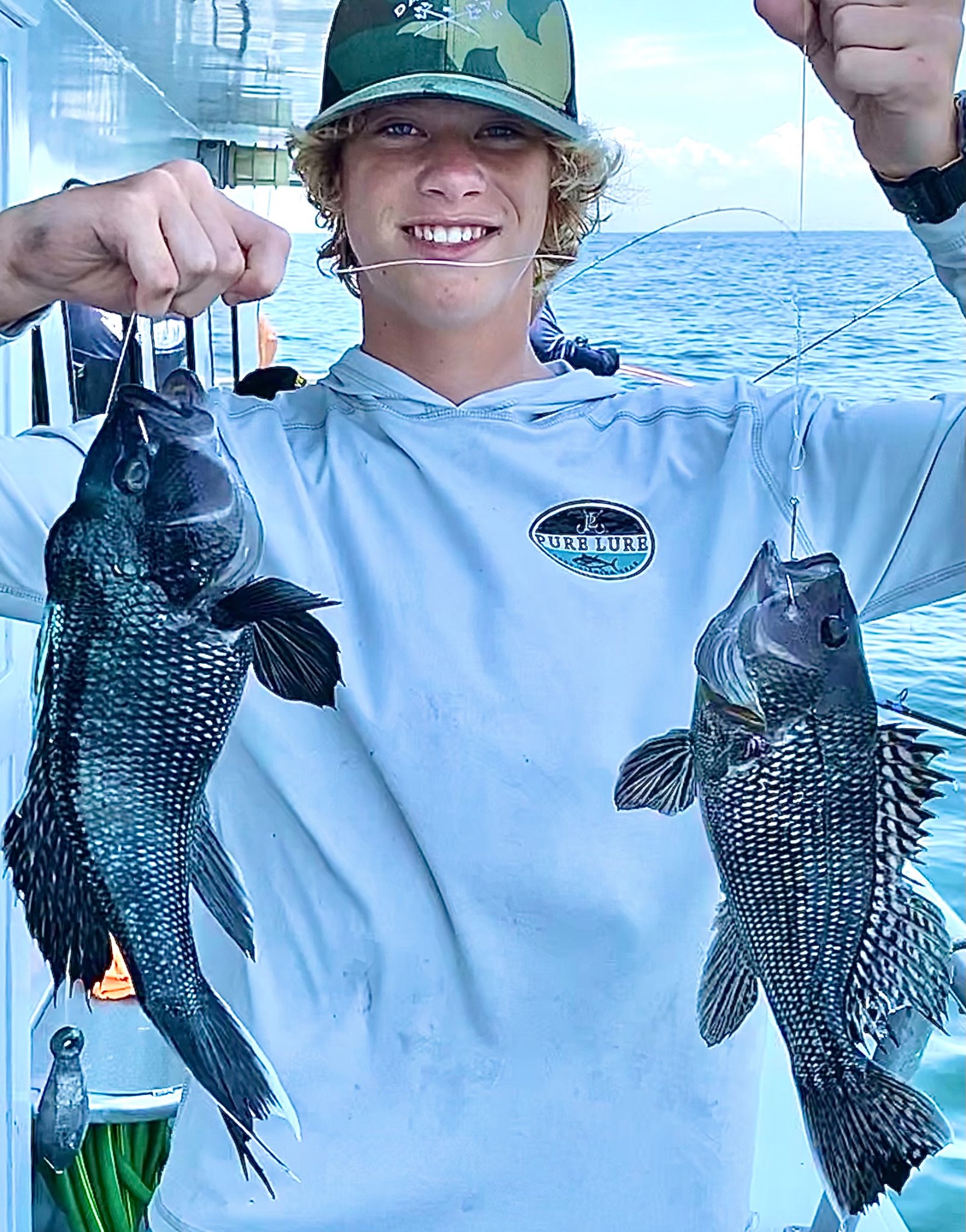 His youthful crew pushed 20 blocks over at Capt Jack Kaeufer’s Memorial Reef and off we went.