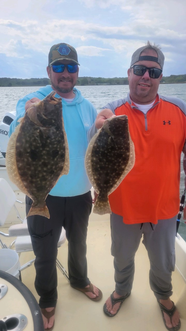 Steve Sweigert, Ken Sweigert and Mike “Dessert Snack” Dzurnak had a good day of floundering in the Thorofare today. The guys used Deadly Tackle Deadly Doubles in pink and in white to box three keepers of 17″, 19″ and 20″.
