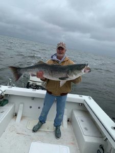 Trophy striper season has opened up on the Chesapeake Bay and fishing has been decent for some. The crew of the Rhonda Corder submitted this photo of a slob 50″ fish caught by the crew of the Wye’s Guys. Regulations on the Chesapeake are currently one fish per person at over 35″.