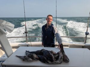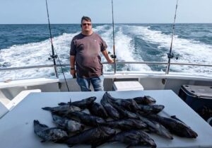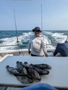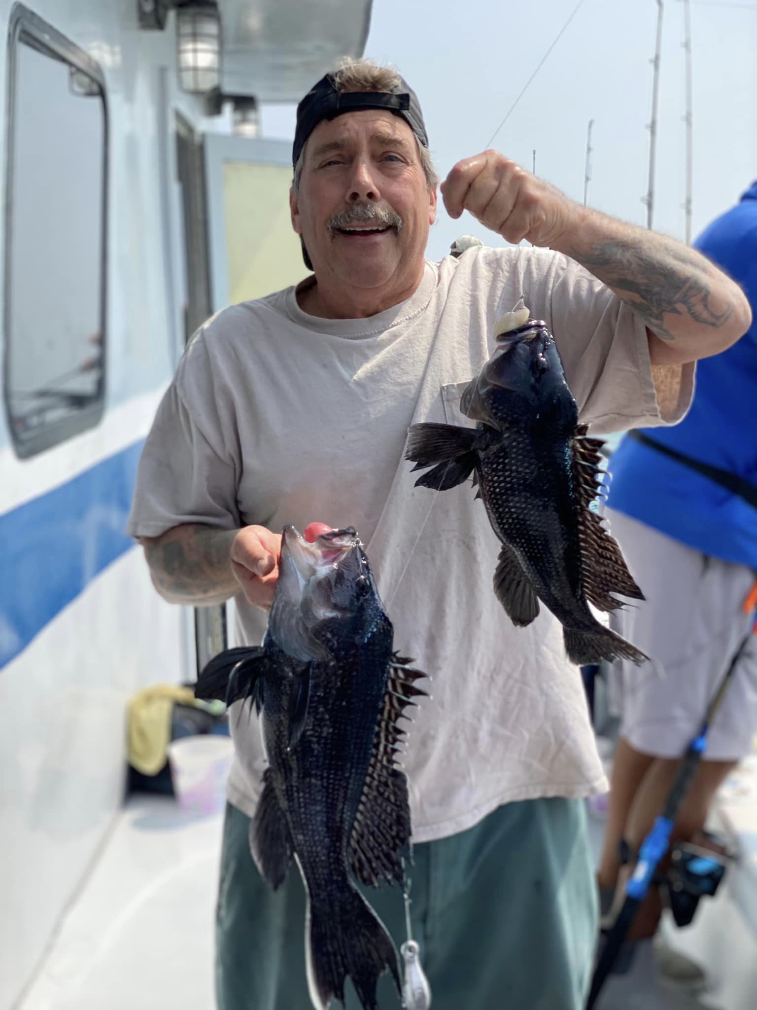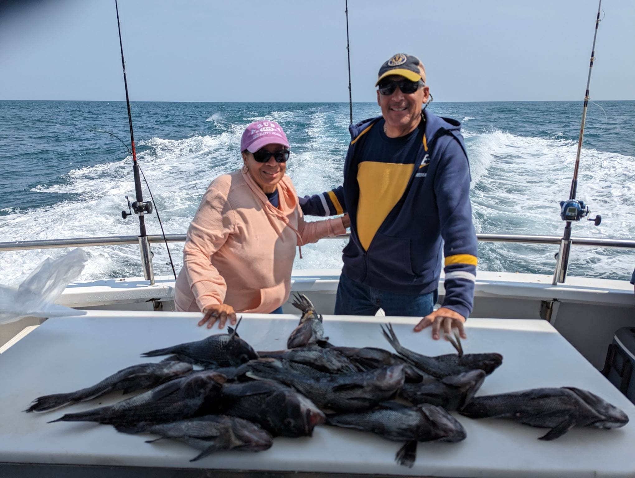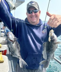 Captain Victor Bunting of the Ocean Princess had to move around on today’s trip, but doing so allowed a bunch of nice sea bass to end up in coolers on his rig.