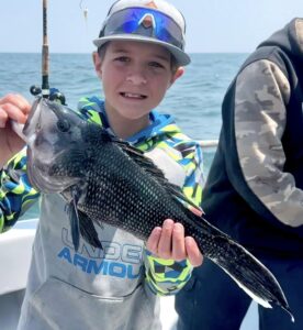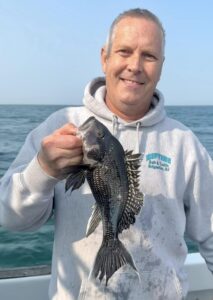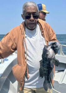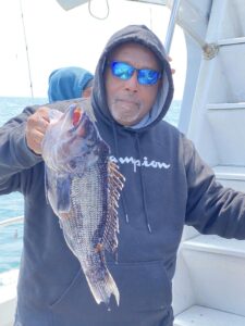 Captain Chris Mizurak of the Angler saw some decent fishing on today’s trip with some good sea bass up to more than 3 pounds.
