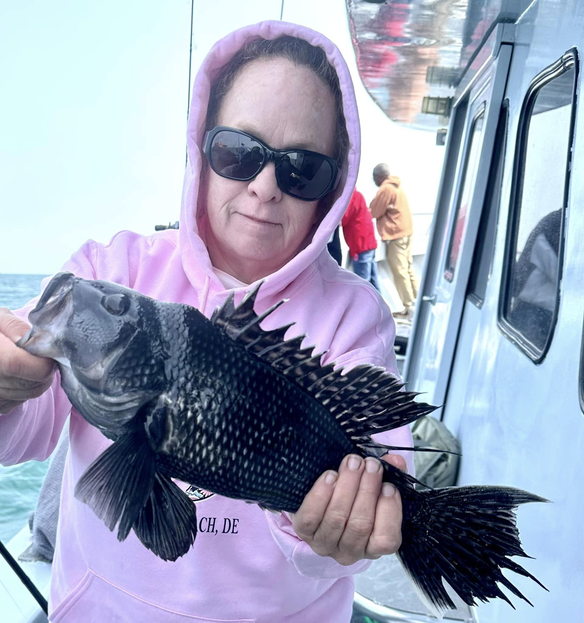 Stretched the day way into overtime to make sure everyone had a solid fish fry for the family. All but two anglers had double digits, yet no one limited. Rare that. Ms Gaye from Temple Hills, MD boxed a big knothead to pocket everyone’s money. Then she won the reef raffle too! (..might be the night to head over Ocean Downs?)