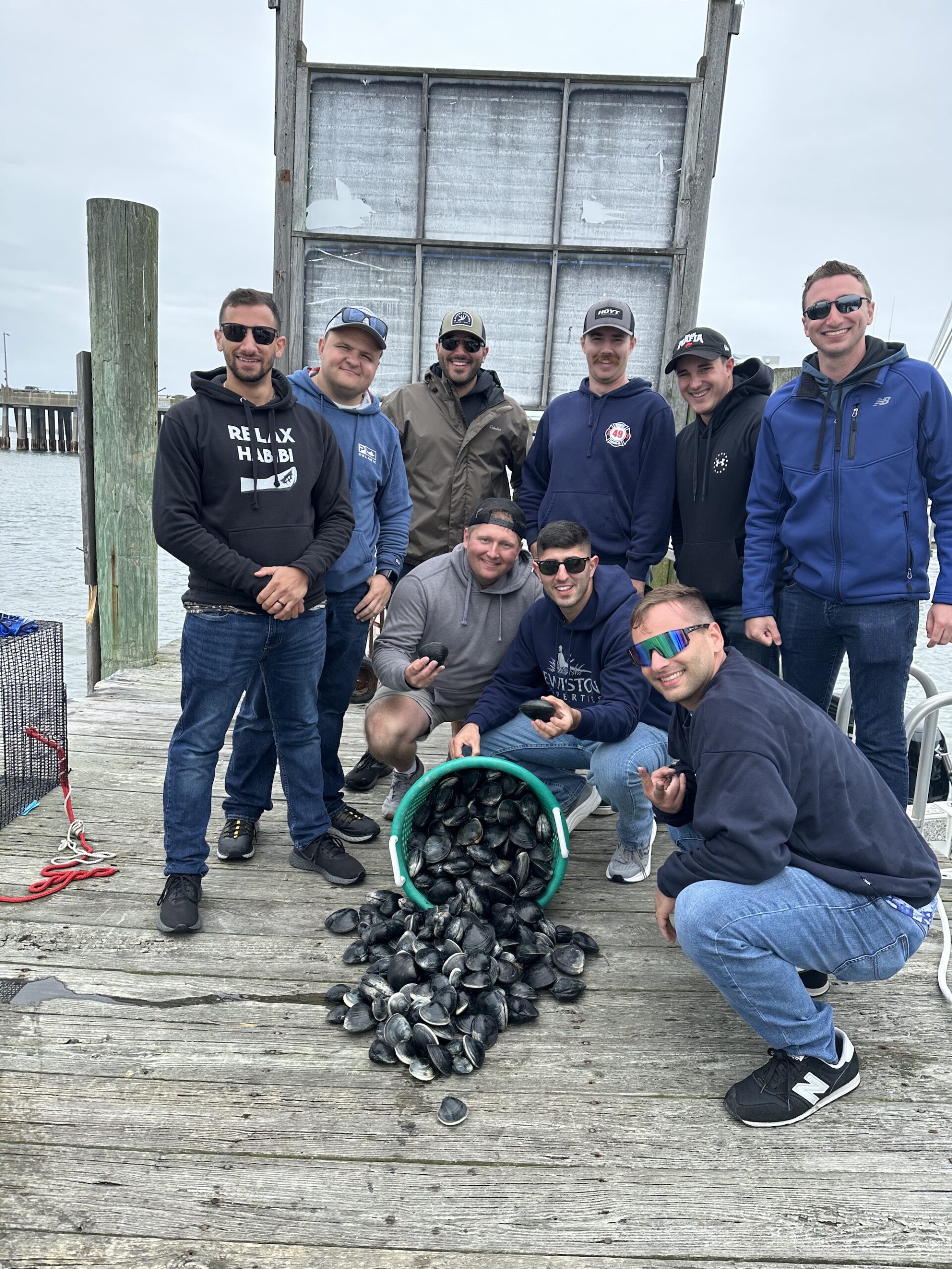 Captain Chase Eberle wasn’t able to get out to the sea bass ground today thanks to the northeast wind, but he did say the clams were snapping in the back bay.