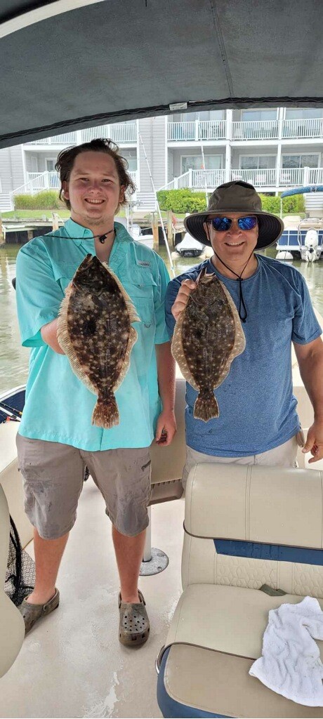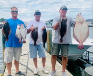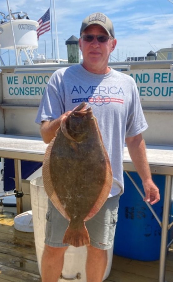 Since most everyone laid in for the Big Fish there wasn’t a ton of offshore action to report today, but there was some good fishing in the bay for some. Mike Brockmeyer from Fallston, MD fished with Bob Miller from Bel Air Md and Jay from Ocean City and had a great day of fishing the bay behind Ocean City. The guys used live spot to catch 9 keeper flounder between 17″ and 22″ and Mike had a stud 27.5″ fish that weighed 7.85 pounds at the OC Fishing Center. That’s the biggest flounder I’ve seen in OC this year.