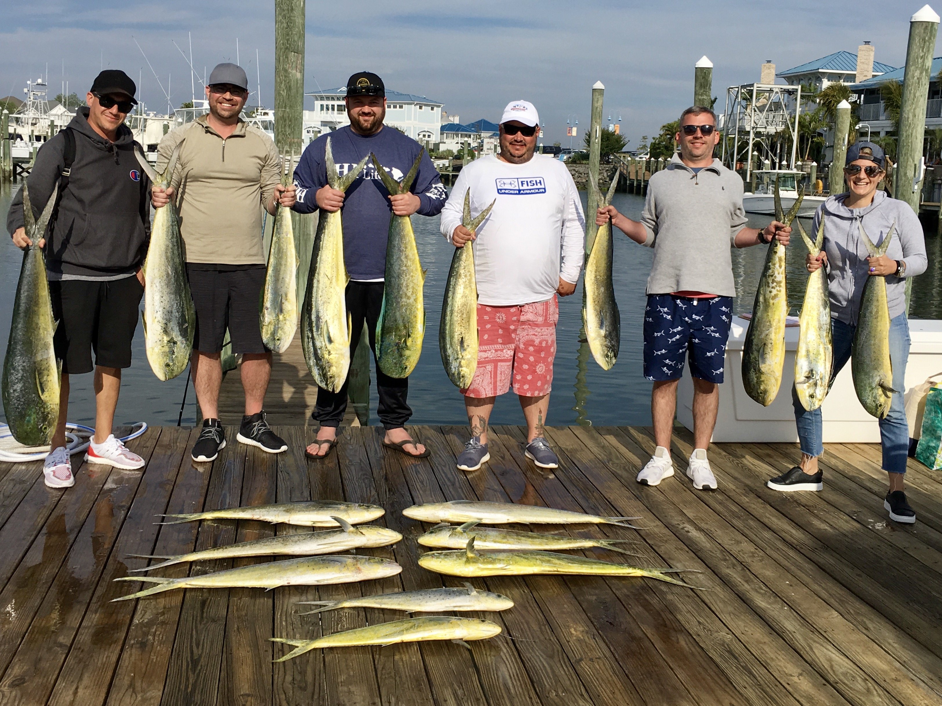 Chad and Wendy Gauss from Baltimore, MD took their restaurant crew from The Food Market onboard the charter boat MARLI with Captain Mark Hoos and mate Mark Stephens today. They had no shortage of action as they boxed 18 mahi fishing just below the Norfolk Canyon. Of course Wendy caught the largest. Well done!