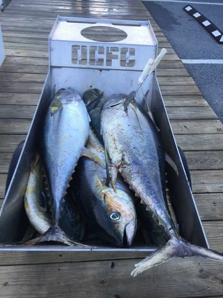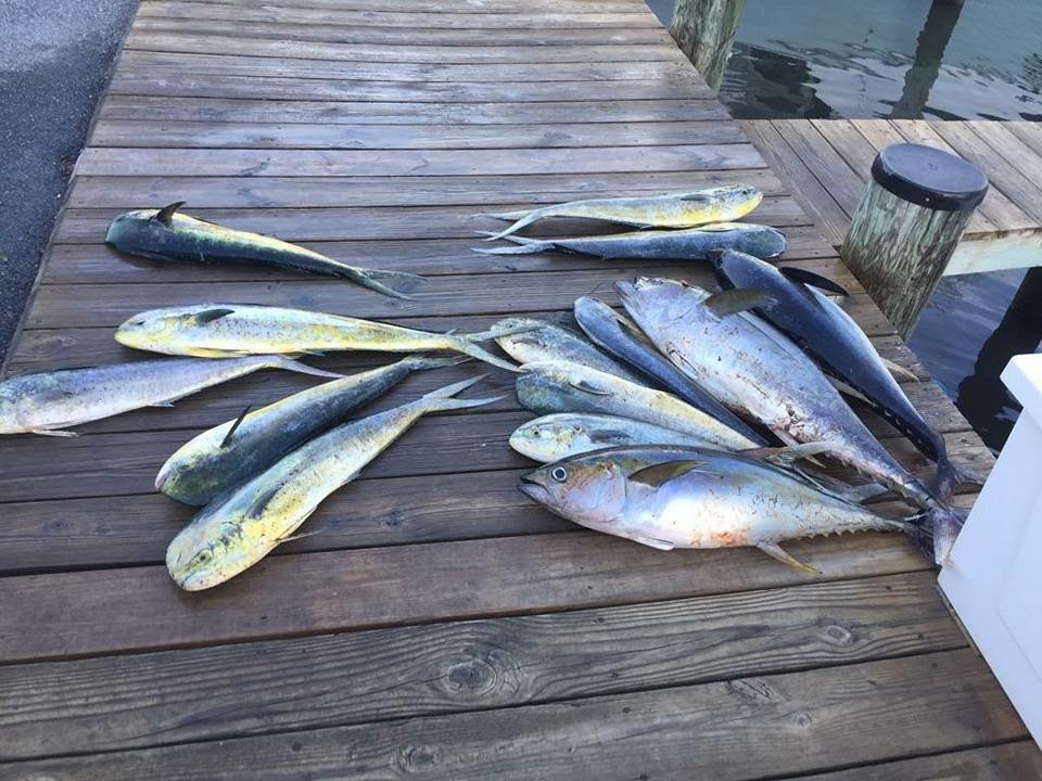 The crew of the Talkin’ Trash with Captain Chris Little was out in the warm water in the Norfolk Canyon today and had a good day with the pelagics. Captain Chris put his crew on three yellowfin tuna and a dozen mahi.