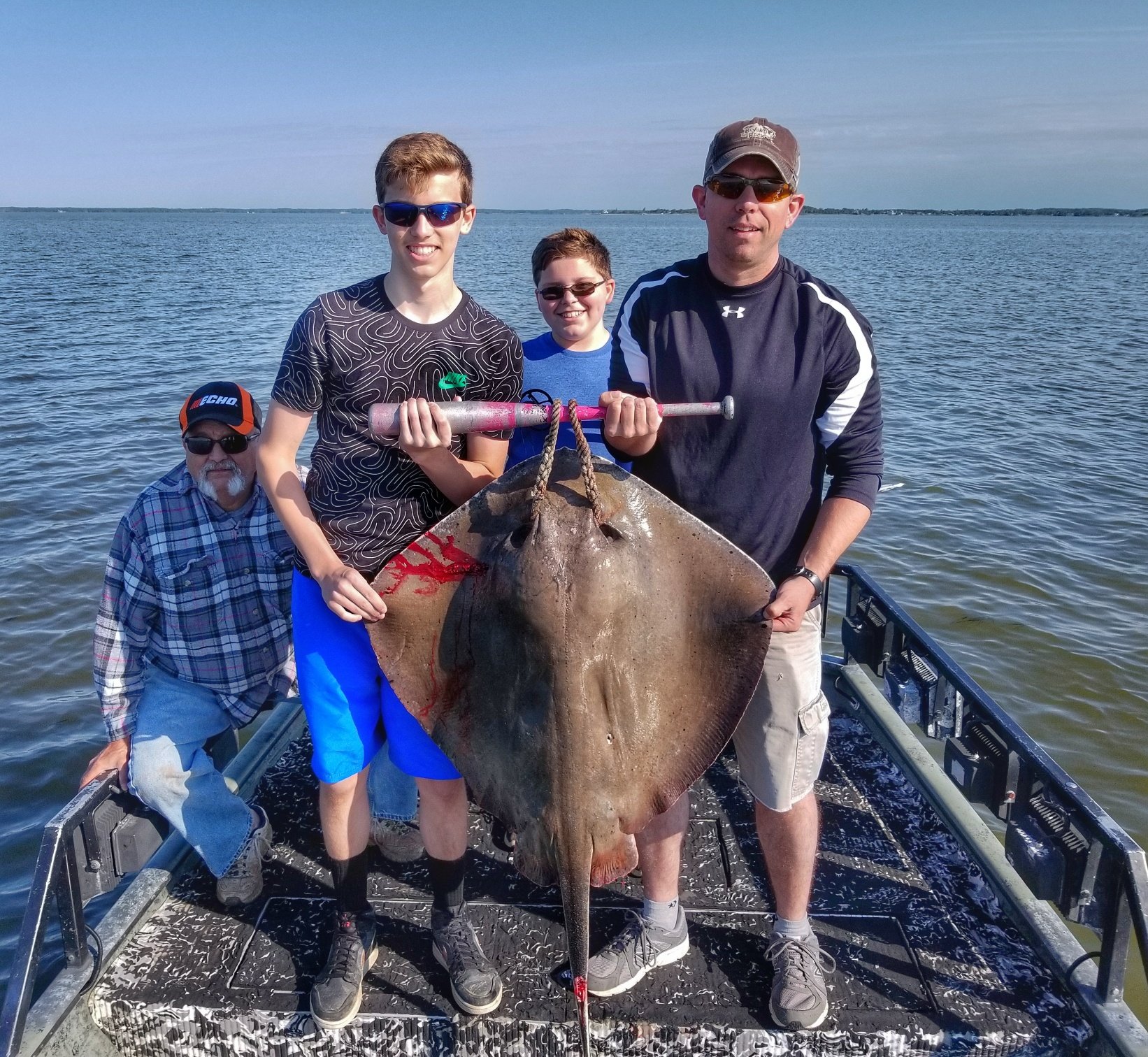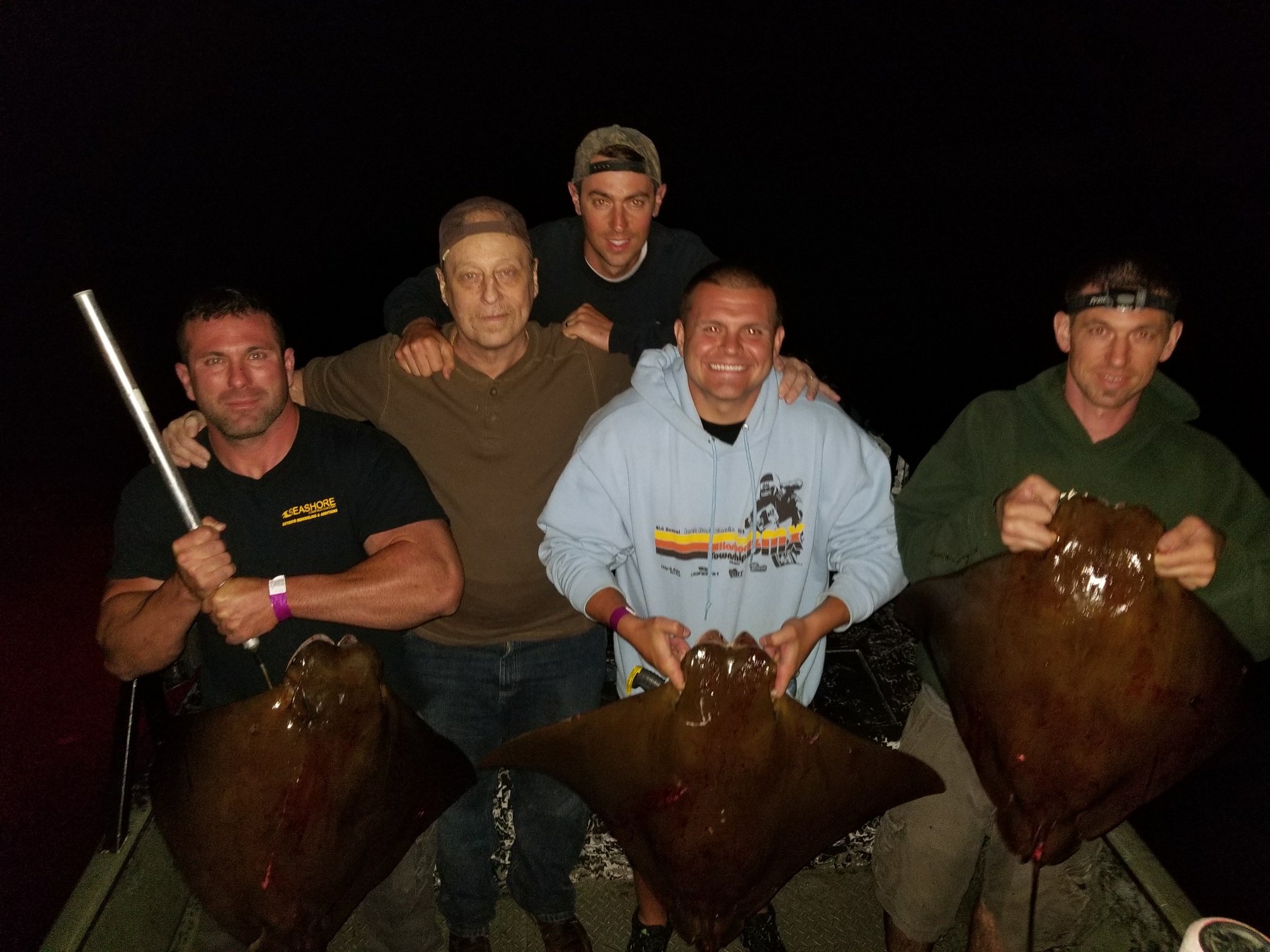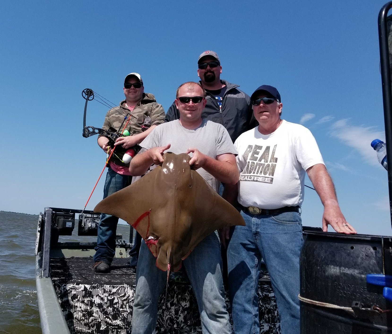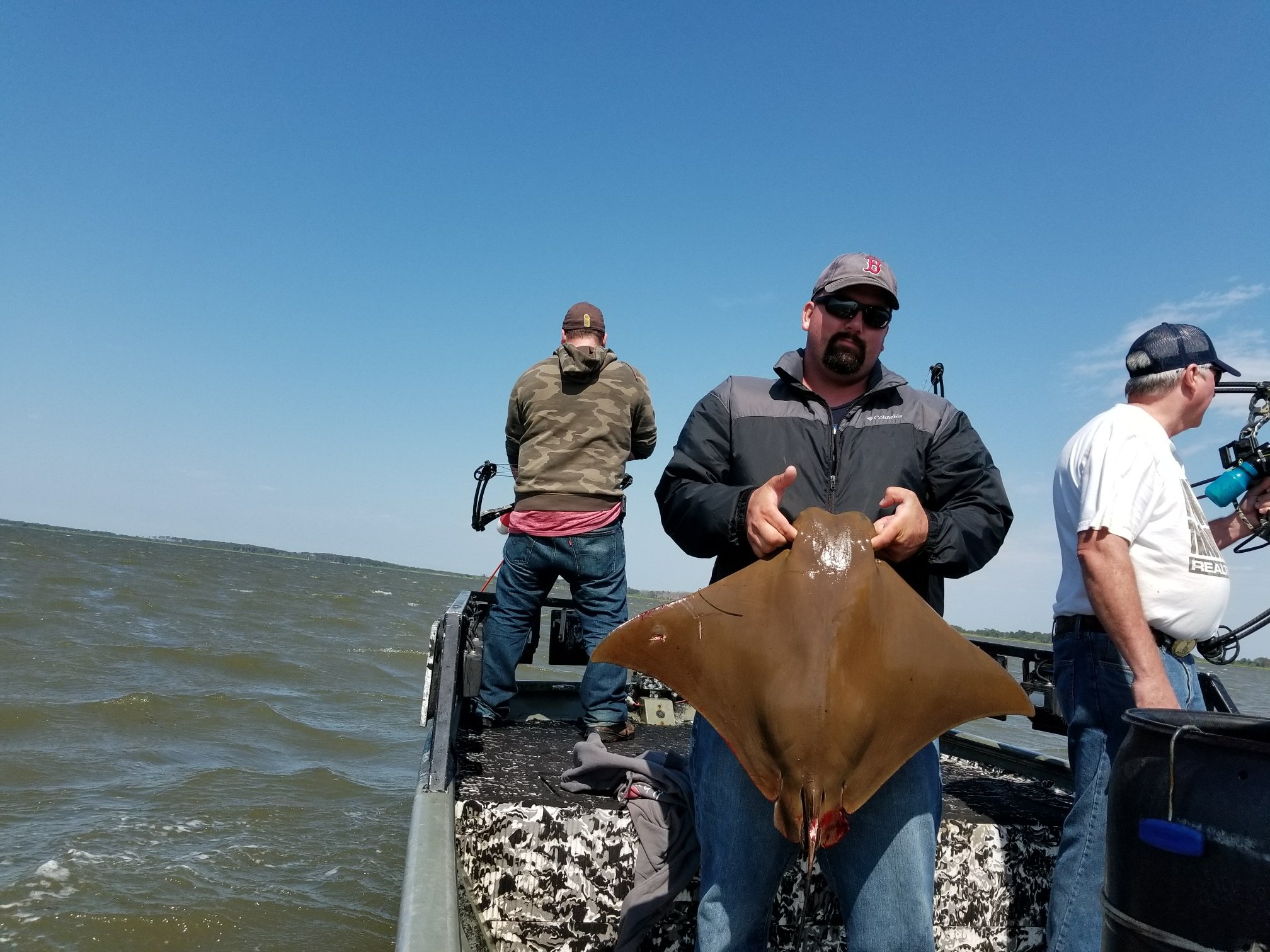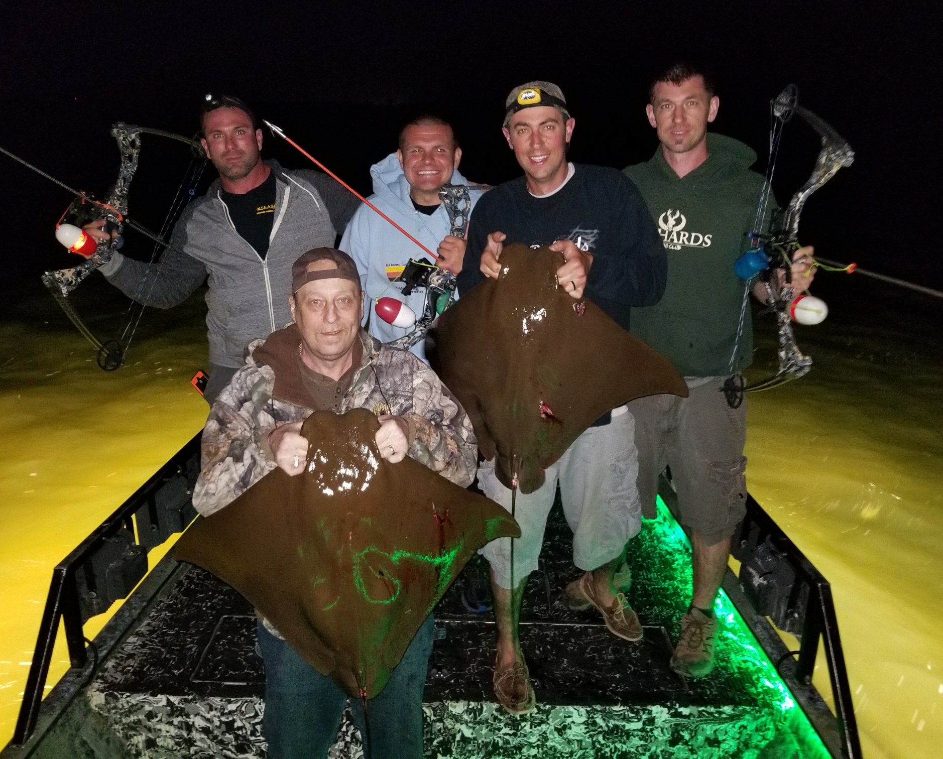 Captain Marc Spagnola of Dusk to Dawn Bowfishing has been having some great luck with cow nosed and southern rays lately. Captain Marc has had daytime and nighttime trips and has put shooters on some great cow nosed ray action despite the windy conditions. Captain Marc even put one shooter on a 50 pound southern ray.