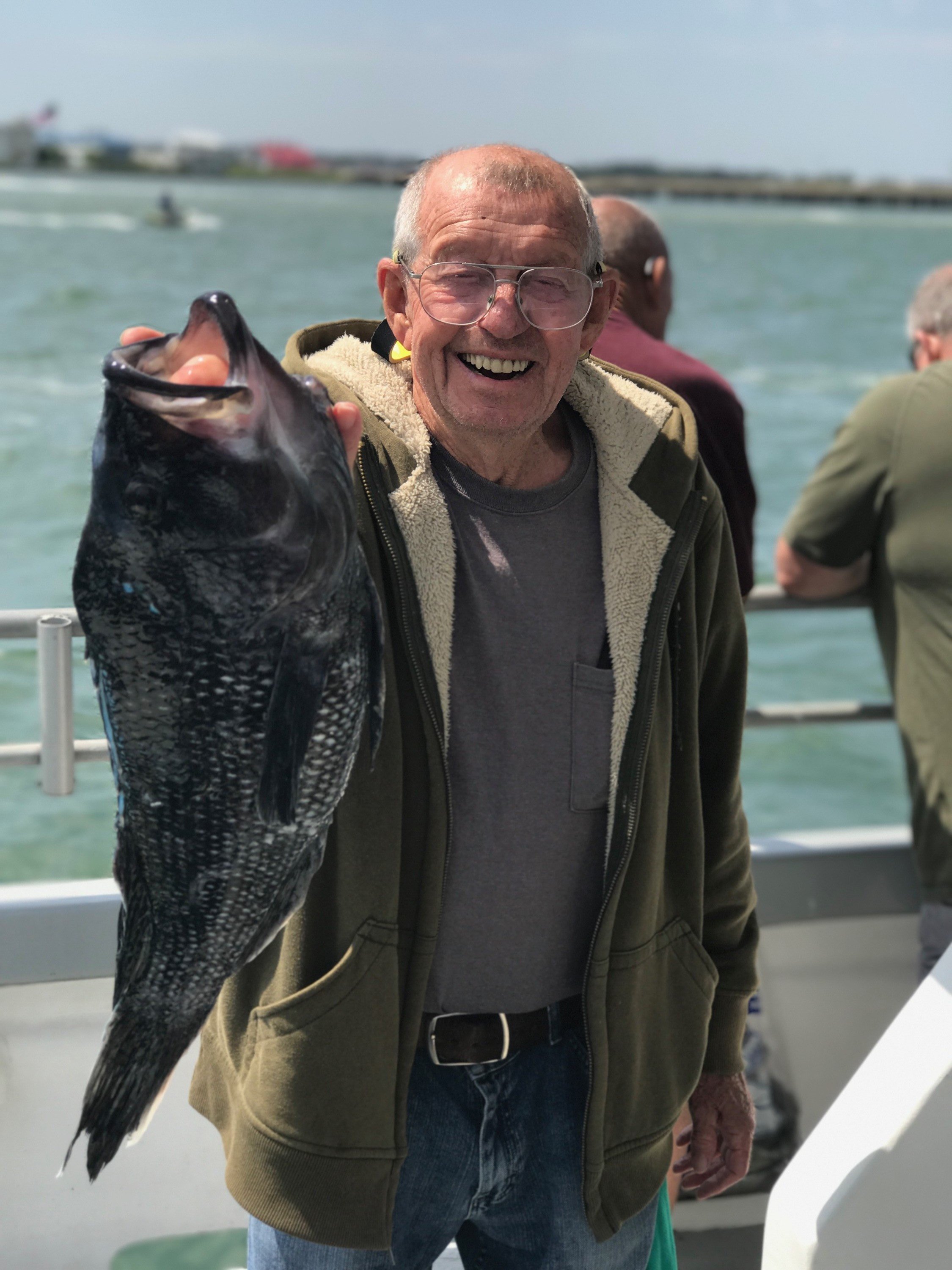 The Judith M had some good sea bassing today as well. Their mascot Kenny caught this beautiful 20″, 4 pound sea bass today with Captain John Bunting at the helm.