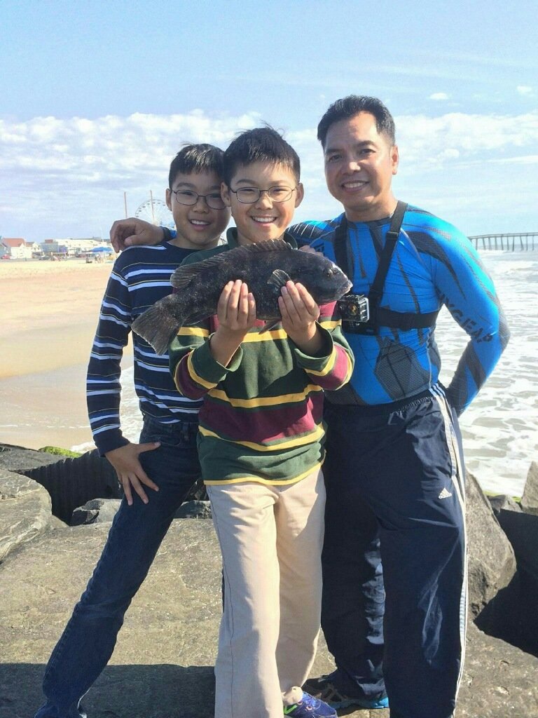 Bear down at the Oceanic Pier in downtown Ocean City submitted this photo of Justin from Silver Spring, MD who caught this 17″ keeper tautog off of the north jetty on a sand flea.
