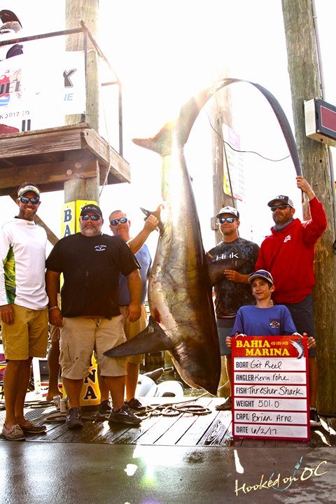 There was a big thresher weighed in today by Captain Jon Yost and the crew of the Game On, but the 434 pounder wasn’t big enough to oust the big 501 pounder caught by Kevin Rohe and the crew of the Get Reel yesterday.