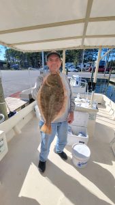 I thought flounder fishing would suck for a couple of days after the wind and rain of Ian, but Captain Jason Mumford of Lucky Break Charters proved me wrong today. Captain Jason put this angler on a nice 20″ keeper flounder, had some throwback action as well and reported tautog biting at the south jetty.