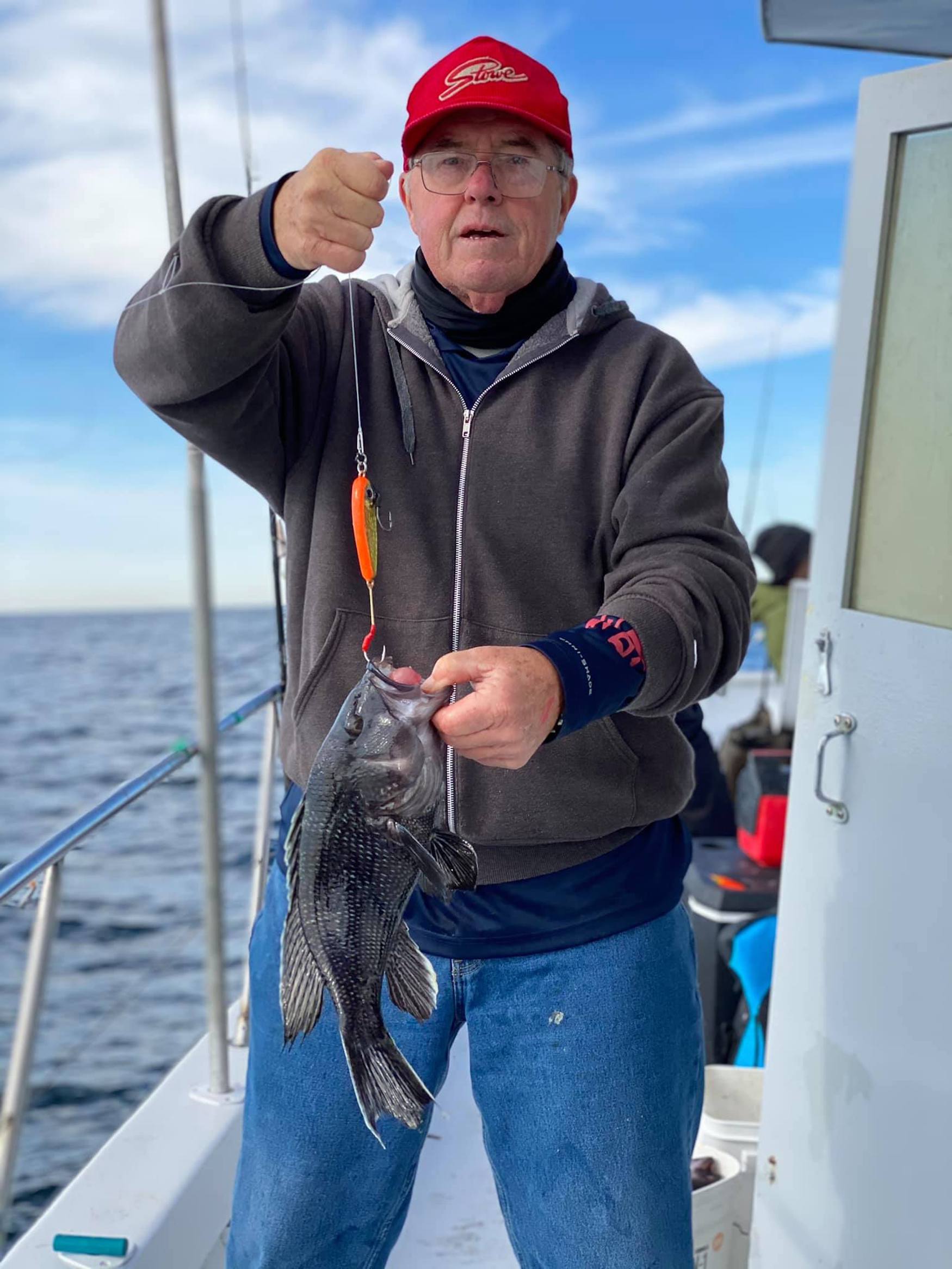 Come a gorgeous day – all around pretty. Fish even bit. Had a passenger & crew limit of sea bass in two and a half hours.