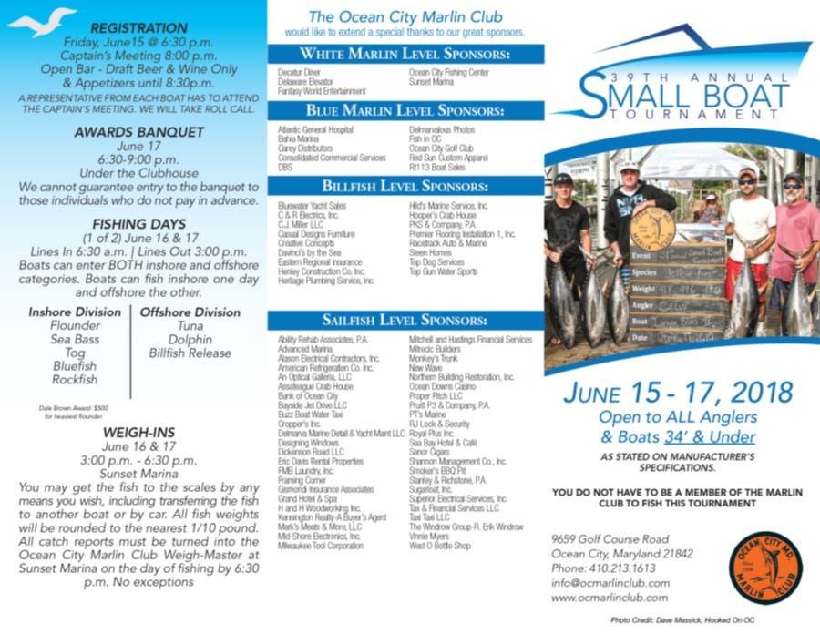 Don’t forget sign ups for the 39th Annual Small Boat Tournament put on by the Ocean City Marlin Club are tomorrow night and it looks like awesome weather for the weekend. You do not have to be a member of the Ocean City Marlin Club to fish this event.