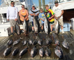 The MARLI with Captain Mark Hoos out of Sunset Marina was yet another boat to have an incredible day of offshore fishing today. George Buerhaus from Forest Hill MD and his crew boxed 17 yellowfin tuna, one bluefin tuna, three bigeye tuna and released an additional 10 yellowfin tuna. The largest of the bigeyes weighed in at 109 pounds.