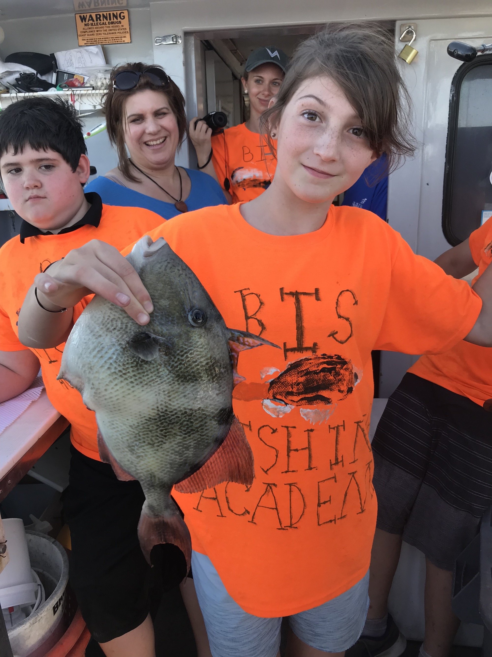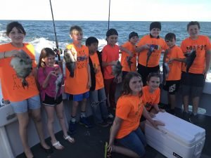 I had the great pleasure of fishing with the Berlin Intermediate School Fishing Academy this afternoon on board the Morning Star with Captain Monty Hawkins and we had a great time. Diana Jolley has a great group of kids and thanks to a donation from Paul Fohner they were able to join us on the Morning Star for a future episode of Hooked on OC and enjoy some really fun fishing. All of the kids were able to catch a couple of sea bass with some keepers going in the cooler, but Tirzah Hill was the fish pool winner with the first triggerfish caught on the Morning Star this year. Tirzah was rewarded with a nice Ocean City Reef Foundation tee shirt.