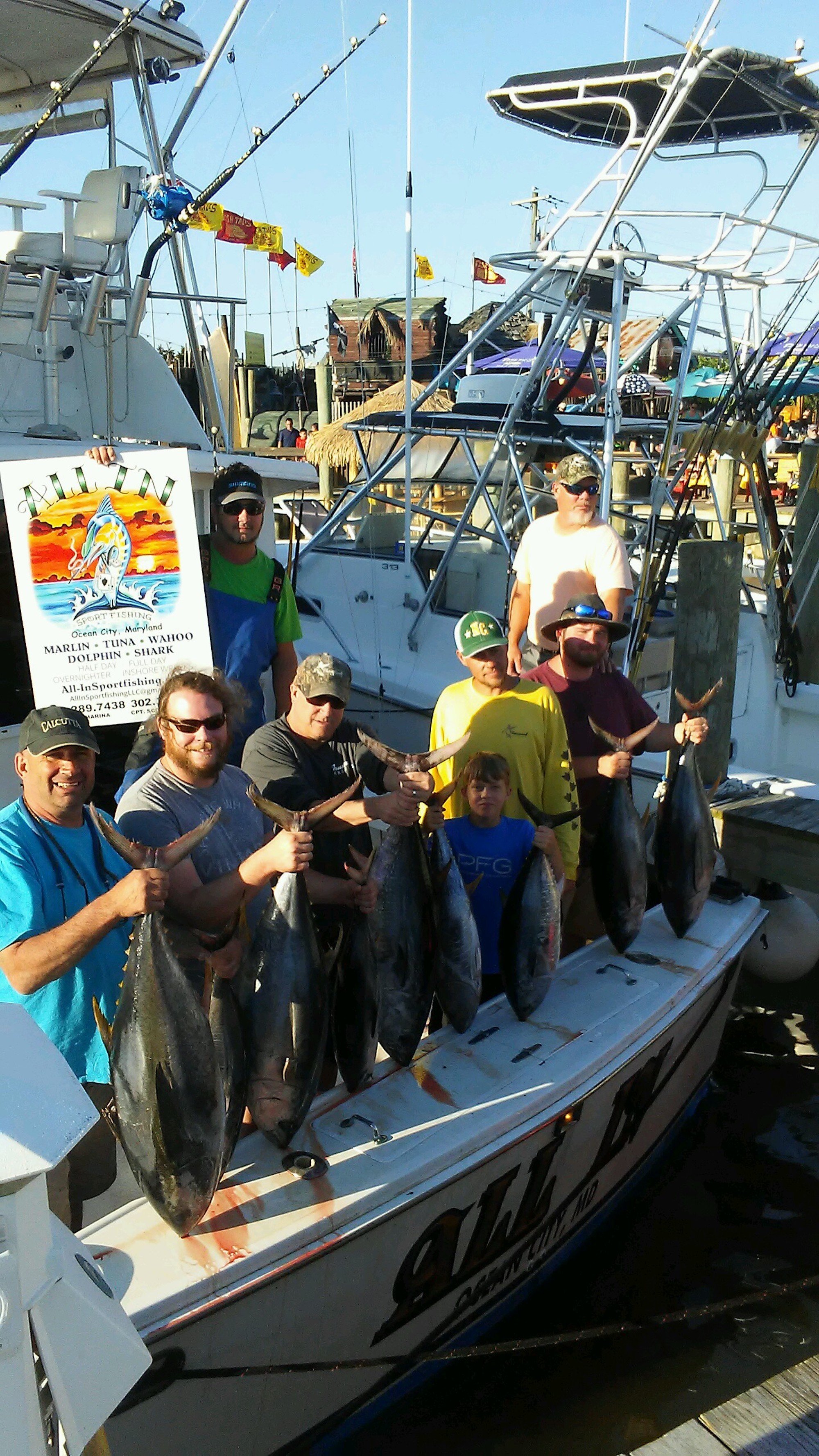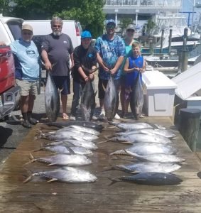 Captain Joe Drosey of Rhonda’s Osprey threw a bunch of fish on the dock at Sunset Marina this afternoon too. Captain Joe put his crew on two bluefin tuna and six yellowfin tuna for a great day of tuna fishing.