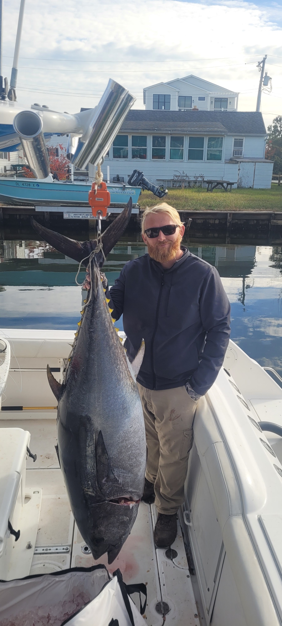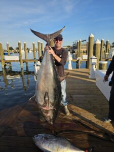 I had the pleasure of fishing on board the WRECKER today with Captain Jeremy Blunt and crew, and though we only caught one fish, it was a big one. The other guys on the crew gave me the opportunity to catch the one and only bluefin tuna of the day, and it was awesome fun. The big bluefin was 67″ long and weighed in at a healthy 191 pounds. This was my personal best bluefin tuna and the catch should make for a great episode of Hooked on OC in the coming weeks.