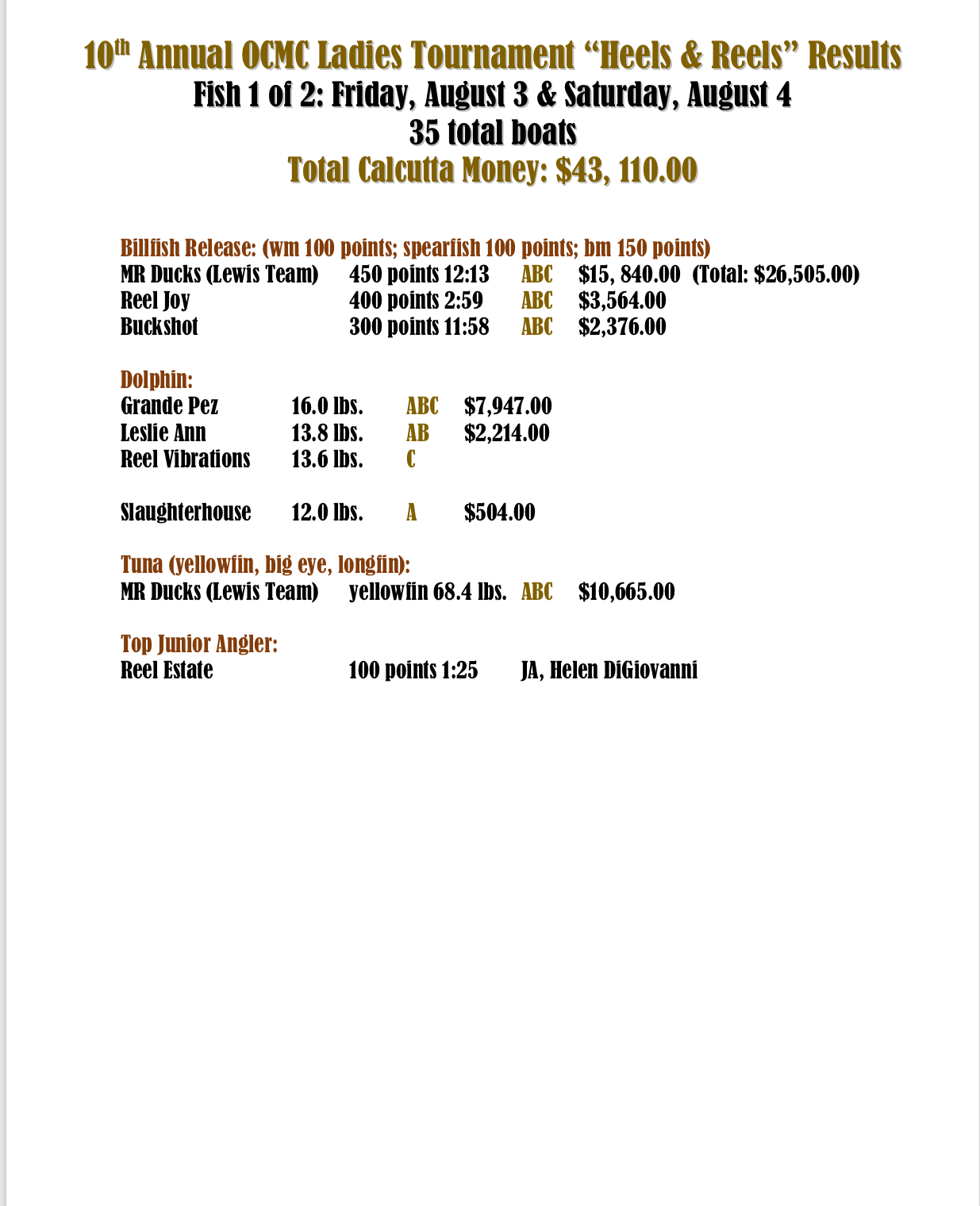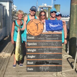 Today was the second and final day for the Ocean City Marlin Club Heels and Reel’s tournament and the ladies really showed us how it’s done. The big money winner was the MR Ducks who brought home most releases and largest tuna for a total of over $26,000. Their win also comes with a cool story where the boat broke down and had to limp in, but the crew of the C Boys with Captain Luke Blume at the helm brought their tuna back to the scale along with their catch report to save the day. Congratulations to all the ladies on the awesome fishing!
