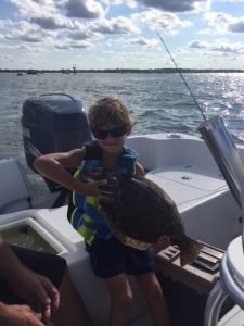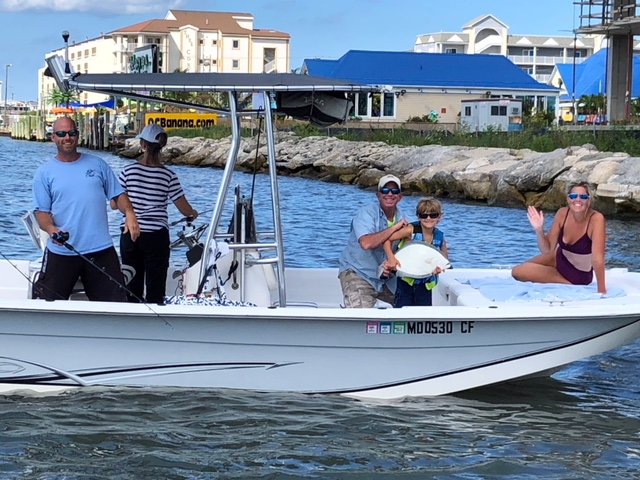 Young Louden Swain was fishing with his family in the east channel and landed this beauty of a 24″ flounder all by himself. Compliments to Captain John Prather of Ocean City Guide service for the picture.