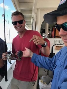 I had the pleasure of fishing on the Bay Bee today with my fraternity brothers from Sigma Pi fraternity at Towson State University and we had an absolutely awesome time! It’s always great to catch up with these guys and have some fun catching flounder down here in my neck of the woods. Ryan Abbot caught the first fish and was awarded some prize money and yours truly caught the most and the biggest. Yes I am getting some grief for it!