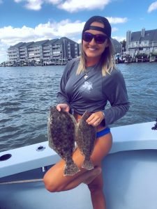 Captain John Prather of Ocean City Guide Service found a couple of nice keepers Flounder on this afternoon’s trip in some pretty dirty water.