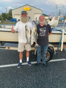 Big Bird Cropper has guest Karl Heinrich in from Germany and today Bird and Shaun Flaherty showed him a good time gute Zeit (good time) catching some big blues at the route 50 bridge.