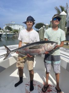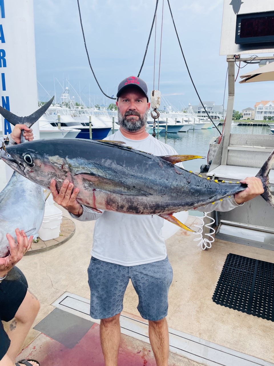 There aren’t a ton of tunas being caught right now, but John Hyams and his boys caught a couple of nice yellowfin on their boat Don’t Tell Carrie this morning.