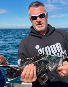 Captain Chris Mizurak of the Angler had a good day of fishing with plenty of sea bass around he rail. They also had some bonus flounder and a couple of mahi.
