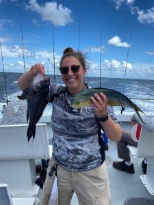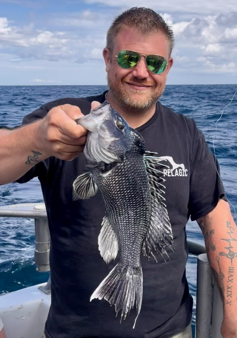 Captain Monty Hawkins of the Morning Star was blessed with some good sea bass and some mahi on today’s trip as well.
