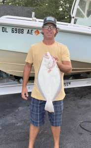 Mike Johnston was fishing the east channel with live bait when he landed this very nice 23.5″ flounder.