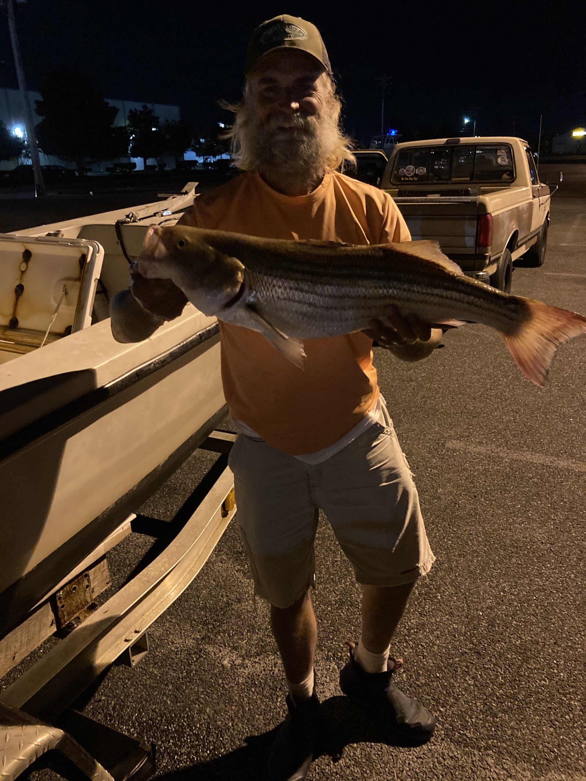 Shaun Flaherty and Big Bird Cropper had an eventful night of fishing last night when they released a bunch of short rockfish and landed this 29″ keeper at the route 50 bridge.