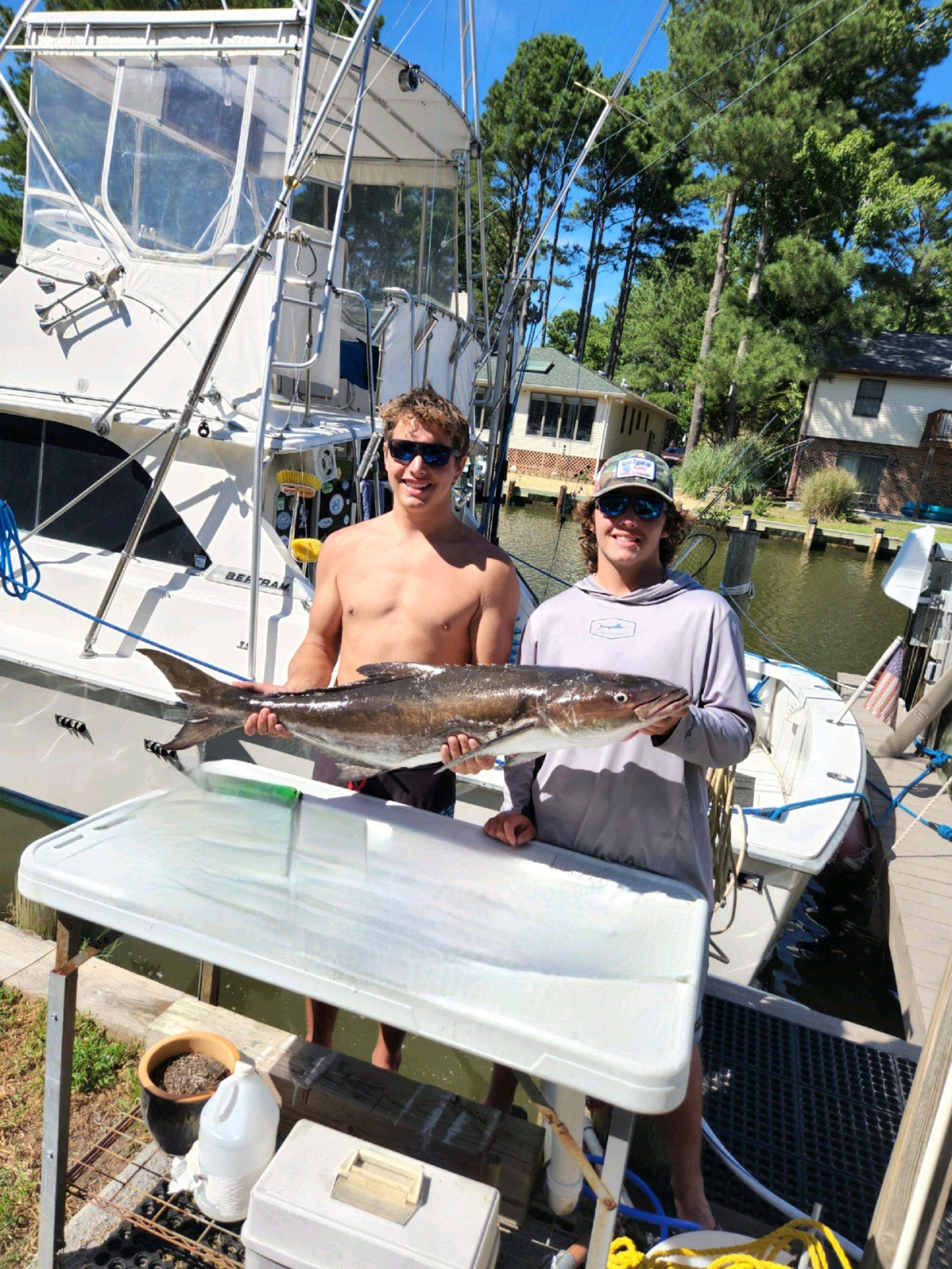 My nephew Josh Blume and his buddy Gunnar fished inshore yesterday where they wrestled in this beauty of a cobia that was 45″ long and weighed in at 35 pounds.