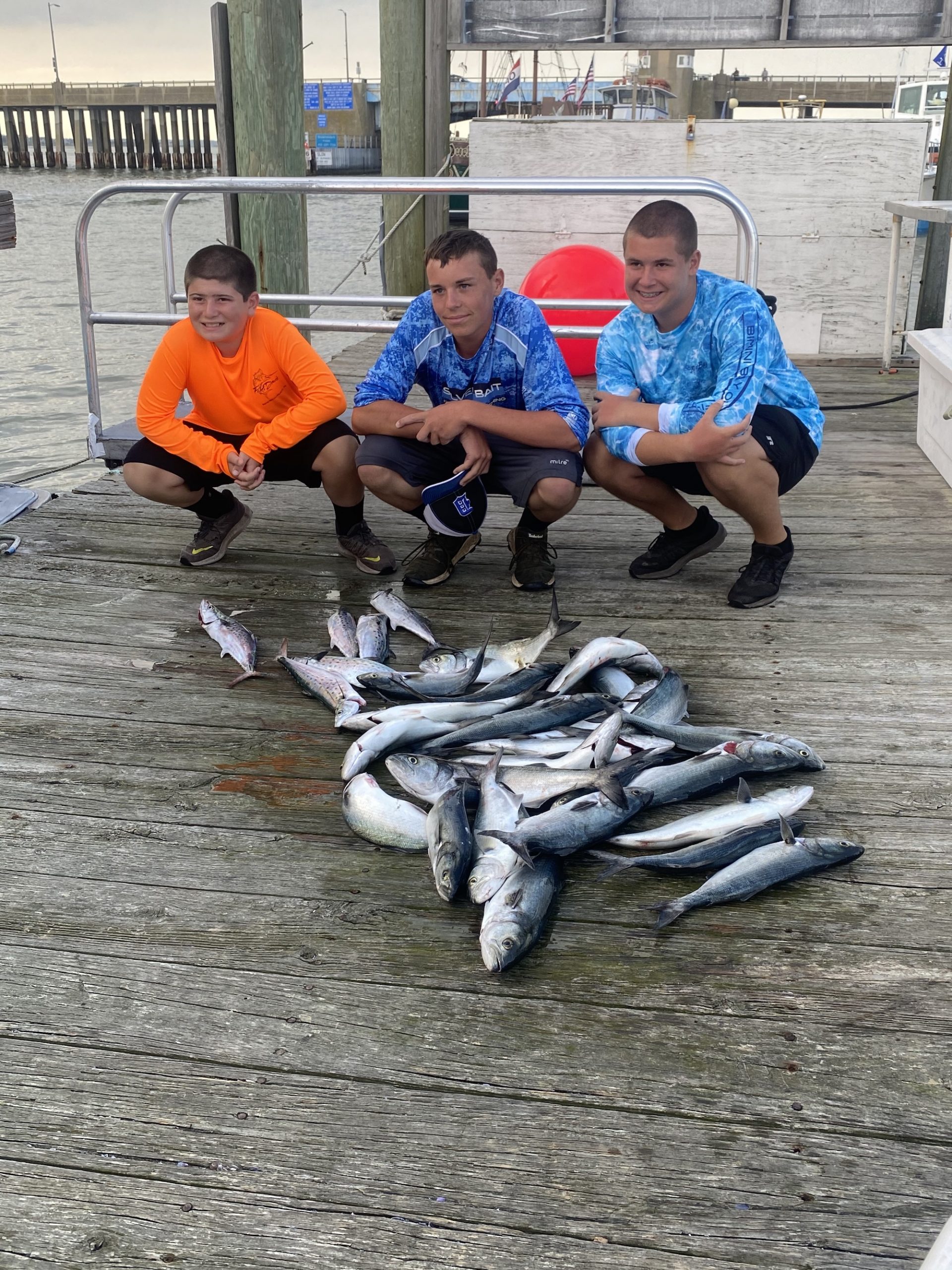 Captain Chase Eberle of Chasin’ Tides Charters had a nice day with the bluefish putting these young anglers on a nice pile of fish.