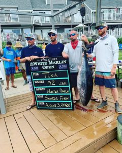 I just got back from day 2 action at the 47th Annual White Marlin Open and it was a surprisingly busy day at the scales. Only 35 of 443 boats decided to fish today and by all accounts it started off a little rough, but by the afternoon was it was glassy calm. With over 1,200 fishing days left and an average of over 300 boats per day left, I have a feeling that we are in for some super busy scales action for the last four days of this year’s extended event. I’m also guessing that with two close white marlin today that just missed the 70 pound tournament limit that there will be a qualifying fish caught tomorrow. Here is what the leaderboard looks like after two pretty light days of fishing.