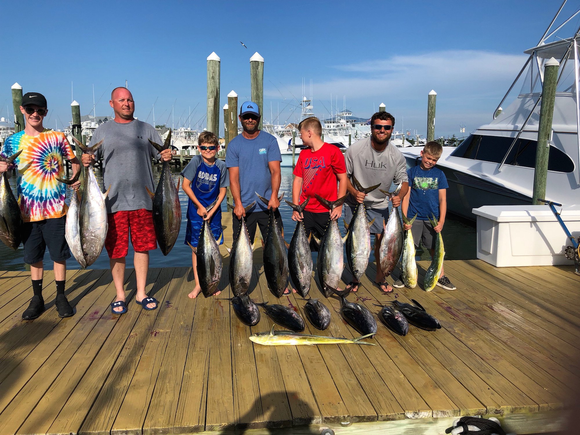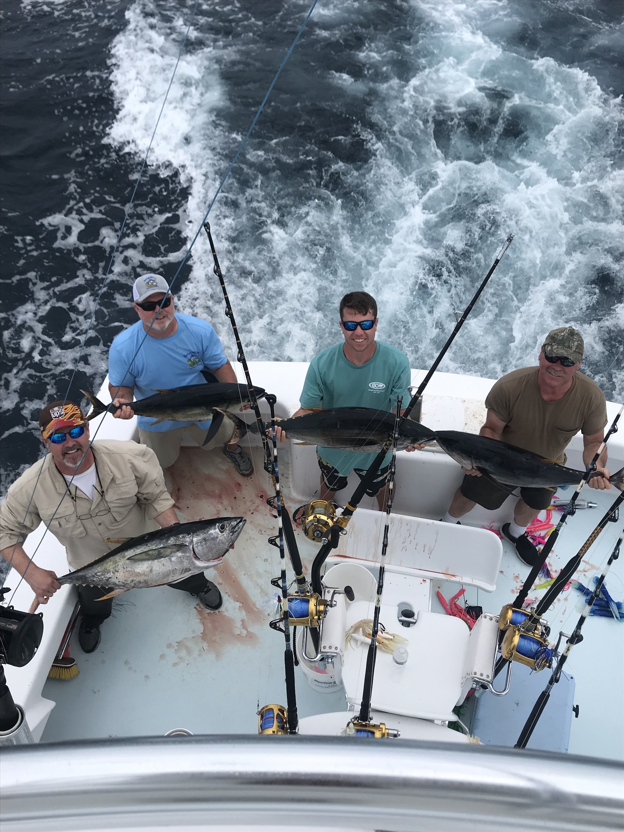 Captain Mike Burt and mate David Burt put the Burt family on some good fishing today. The crew combined forces for 17 yellowfin tuna and some bonus mahi.