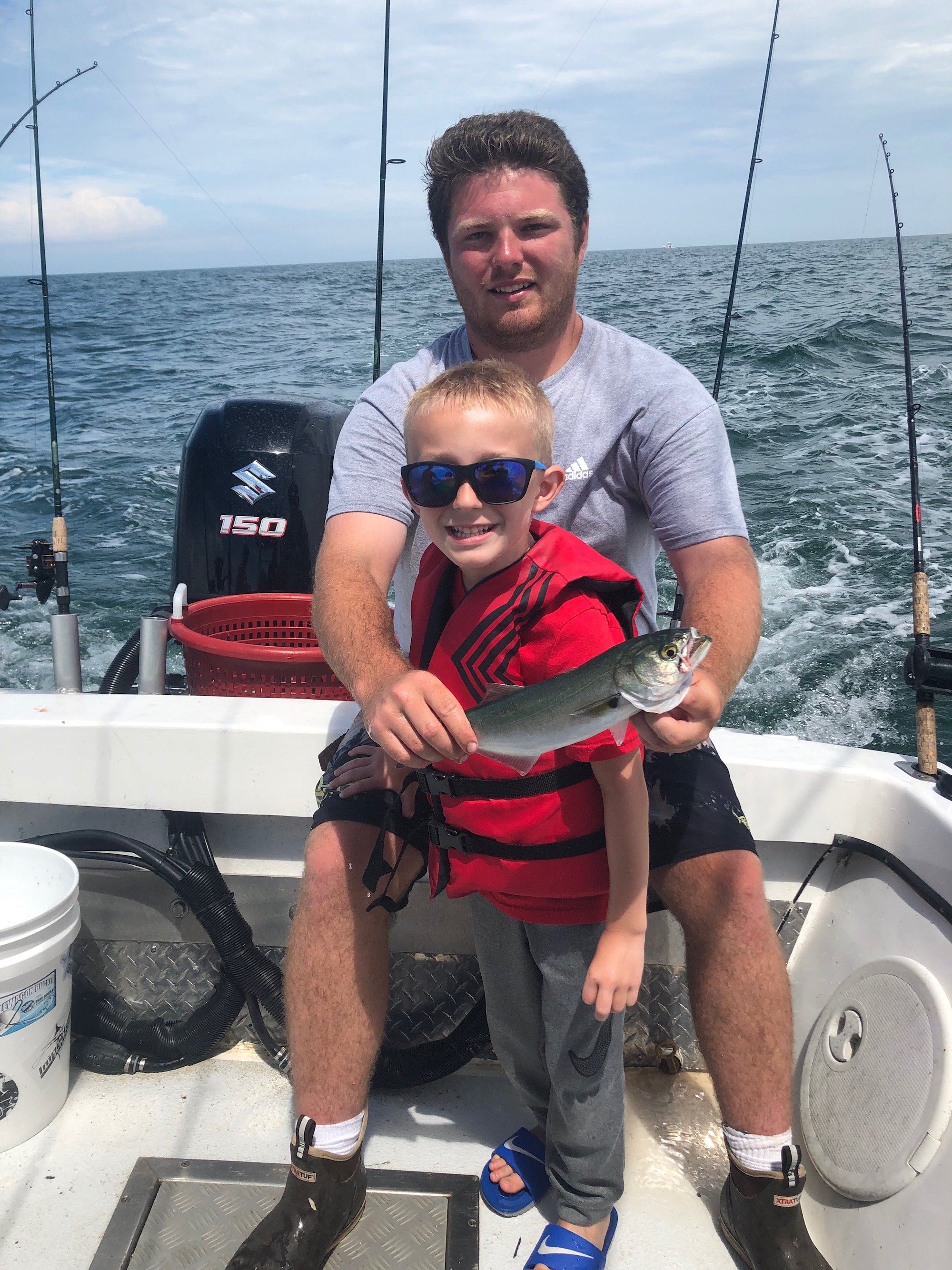 Captain Chase Eberle of Chasin’ Tides Charters put his anglers on some good fishing in the Ocean City inlet and around the route 50 bridge today catching and releasing short rockfish and bluefish.