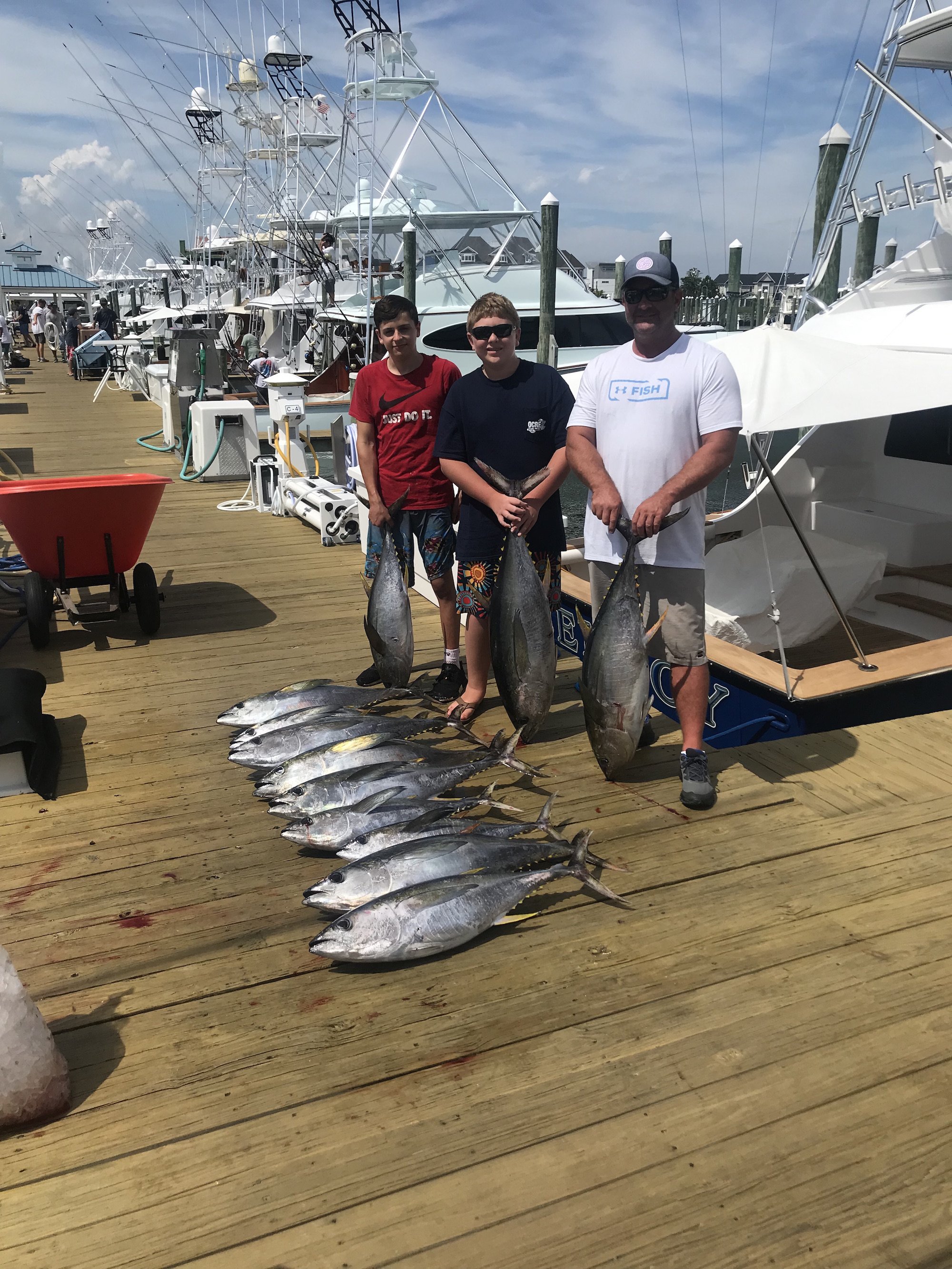 Mike and Mikey Pitarra along with Mikey’s buddy Brian fished on the Lucky Duck II today and had a great time boxing 12 yellowfin tuna.