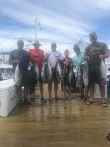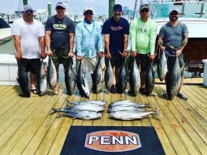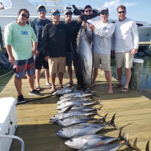 The “railroad gang” had a great trip today on board Rhonda’s Osprey with Captain Joe Drosey and crew putting 10 yellowfin tuna in the fish box.